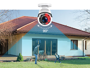 ✅【1080p FHD Resolution】Equipped with a 1/3" CMOS sensor, this bullet CCTV camera delivers crisp 1080p Full HD resolution. Featuring 36pcs IR LEDs, it offers exceptional night vision up to 120ft, transitioning seamlessly between color during the day and black & white at night. The 3.6mm lens provides a wide 105° viewing angle, ideal for capturing expansive scenes. (Actual coverage may vary depending on environmental factors.)