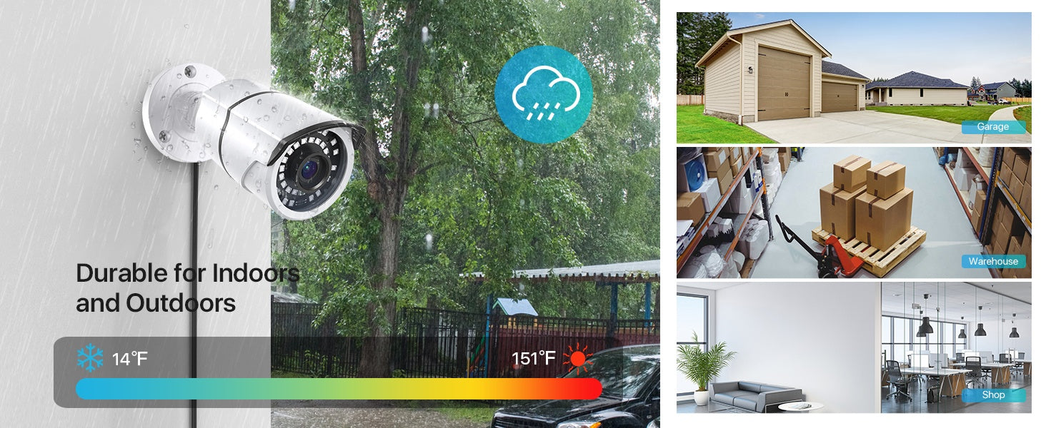 ✅【IP67 & High-Quality ABS Housing】With IP67 weatherproof and the best ABS exterior housing, these wired cameras can stand from cold to hot, from -40°C/-40°F to 60°C/140°F. Every detail is designed for a longer lifespan.
