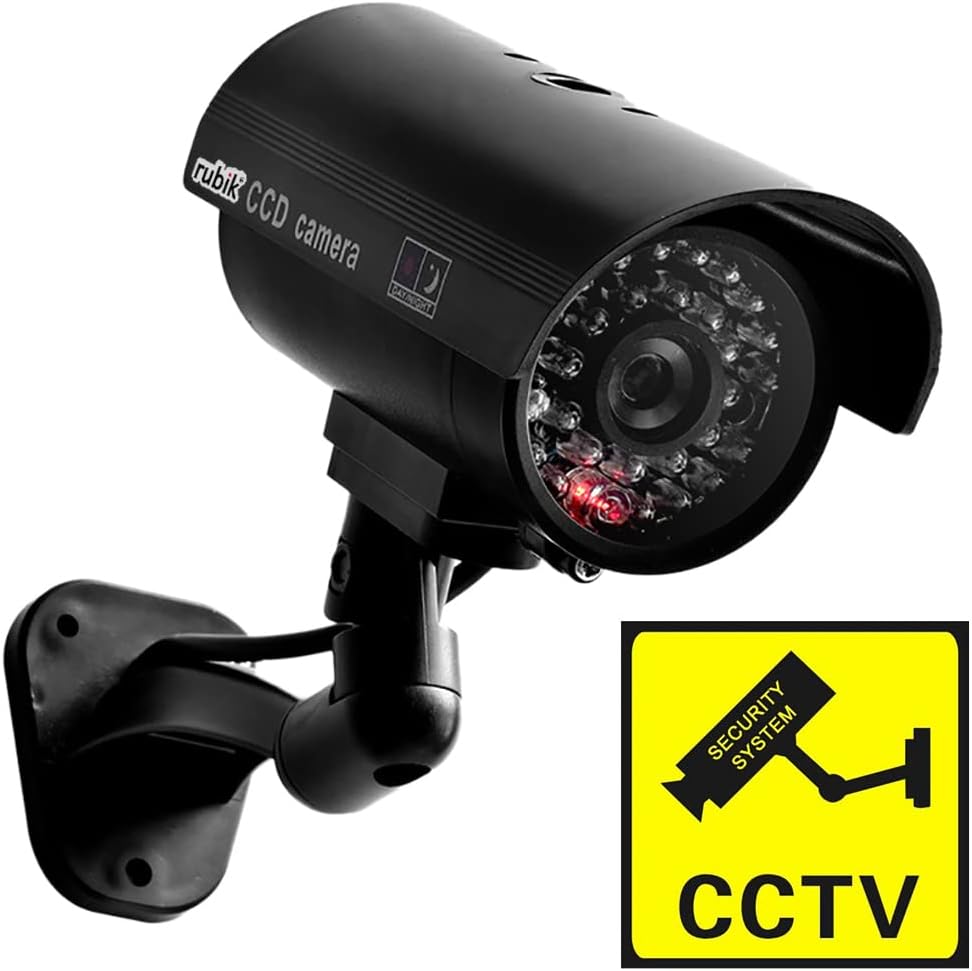 Rubik Dummy CCTV Security Camera, Small Indoor/Outdoor Adjustable Fake Surveillance Simulation Bullet Camera Security (Black)