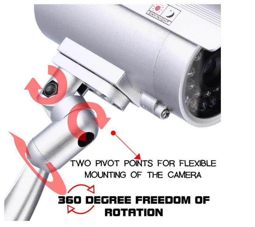 Appear to work as an actual security camera. Adjustable camera position, realistic looking (Note these are fake cameras and can not record).