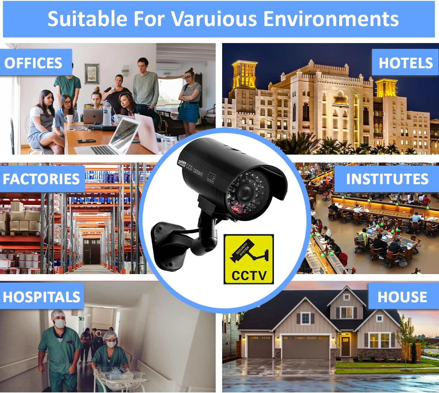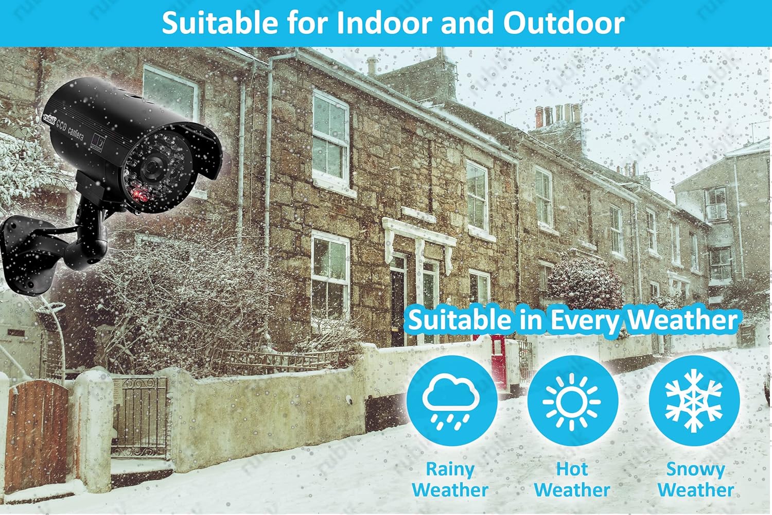 Mix dummy and real cameras to increase your security at a fraction of the cost of real cameras. Perfect for outdoor/indoor use. All weather compatible.