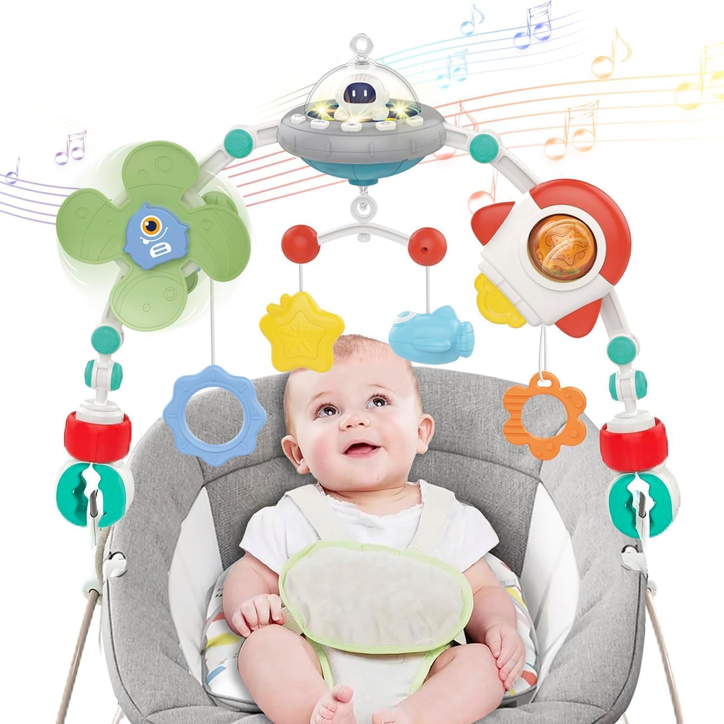 - ♫【 Easy to Install】The musical arch toy for boys girls has two adjustable clamps that can be loosen and tighten, making you easy to attach it on a variety of stroller, bouncer, bassinet, crib, car seat, baby swing, carry cots, rocker, etc.