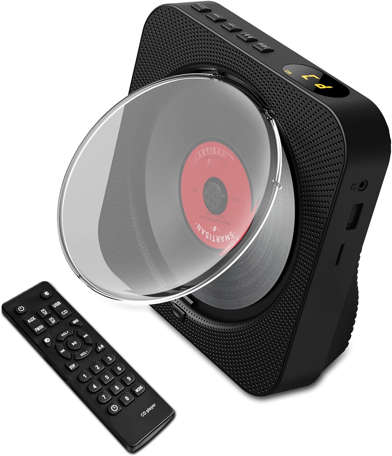Eacam Portable BT5. CD Player, HiFi Sound Speaker, CD Music Player with Remote Control, Dust Cover, FM, LED Screen, Support AUX/USB for Home