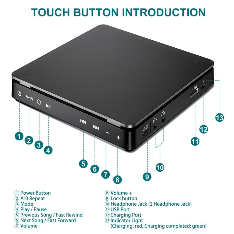 Kecag Portable Cd Player Walkman Ins The Same English Learning Retro Cd Disc Album Player