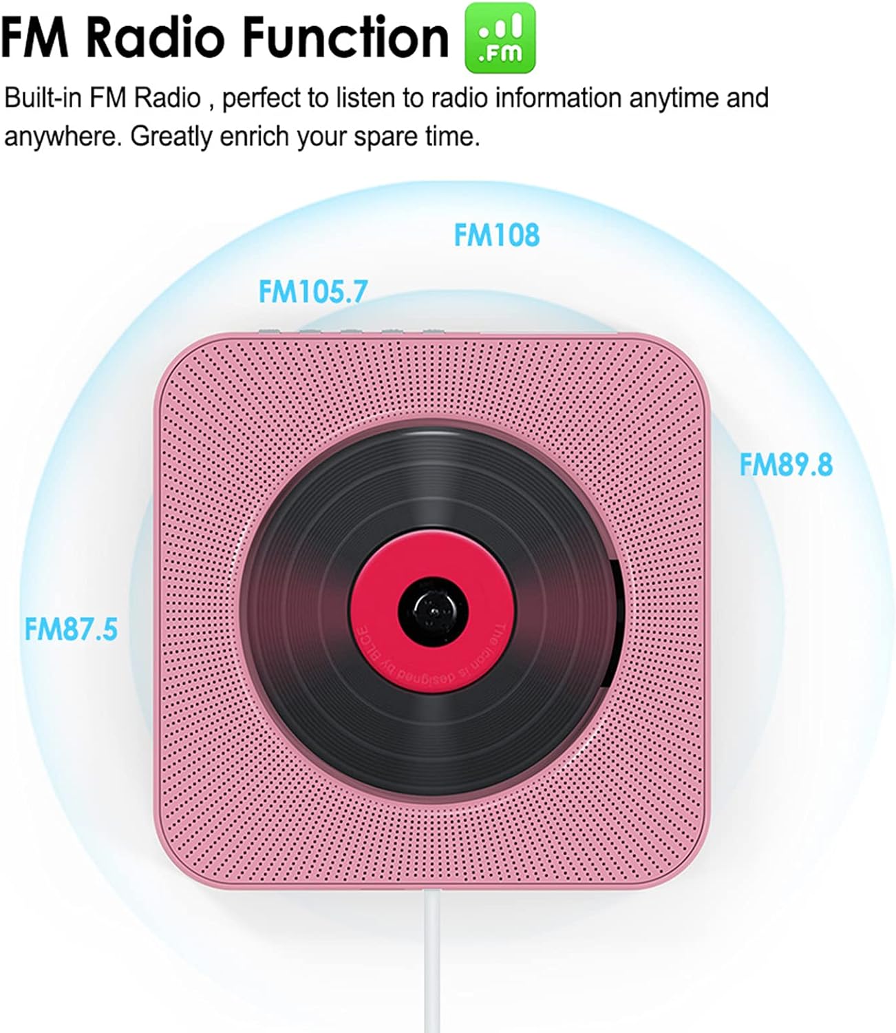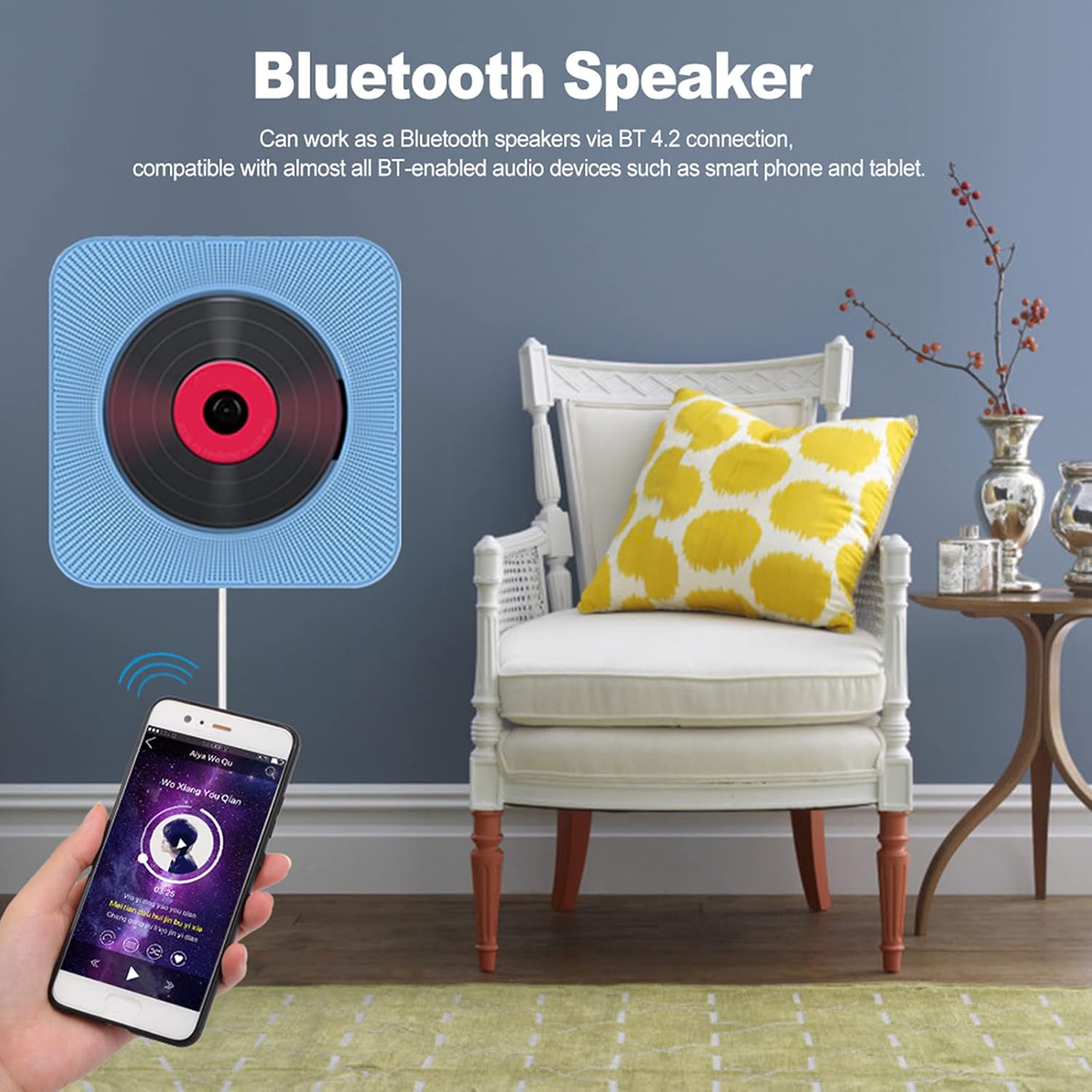 Wall Mounted CD Player Bluetooth Speakers Home o Boombox with Remote Control FM Radio Auxiliary, USB Input Headphone Output U Disk Music Player