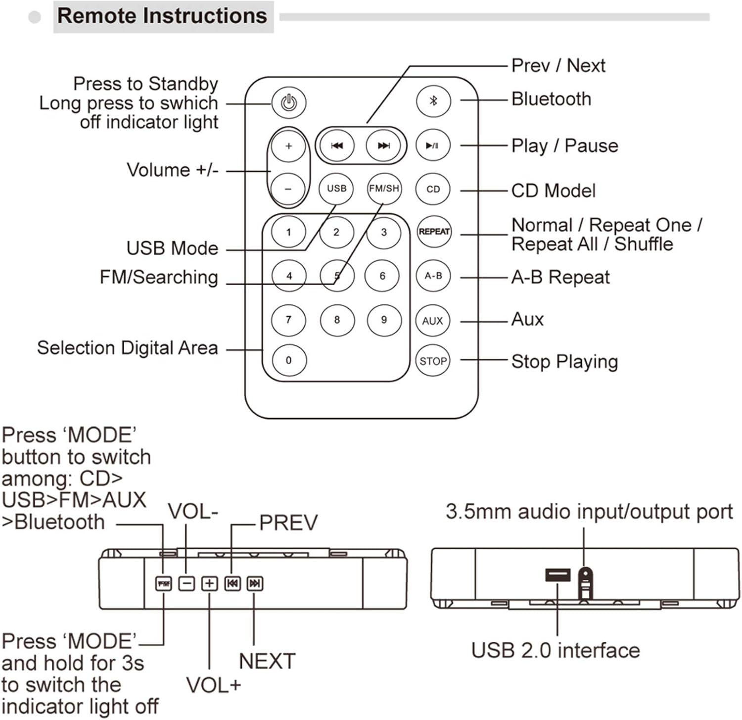 ❇Multifunctional: Portable CD Player, Bluetooth Stereo Speaker, FM Radio, AUX Input / Output and U Disk Music Player, 5 in 1 smart combo.