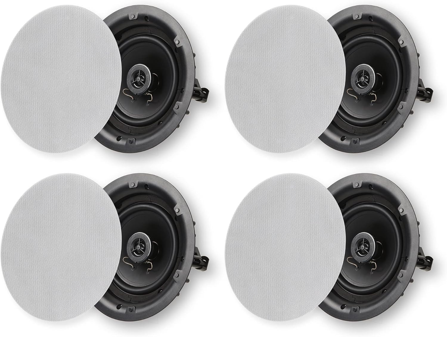 Micca Architecture Series 2-Way in Ceiling in Wall Speaker, Rimless Design, 8 Inch Woofer, 9.75-Inch Cutout Diameter, 4 Pack, White