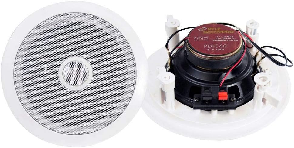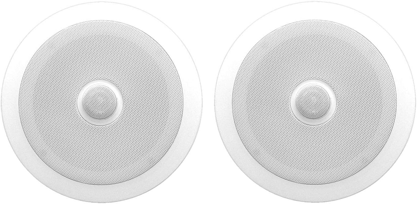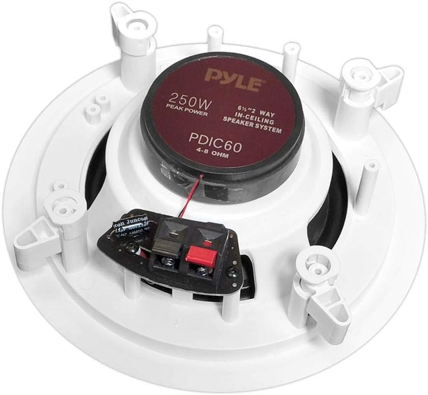 Pyle 6.5'' In-Wall/In-Ceiling Midbass Speakers (Pair) - 2-Way Woofer Speaker System Directable 1” Titanium Dome Tweeter Flush Mount Design w/ 65Hz - 22kHz Frequency Response 250 Watts Peak - PDIC60