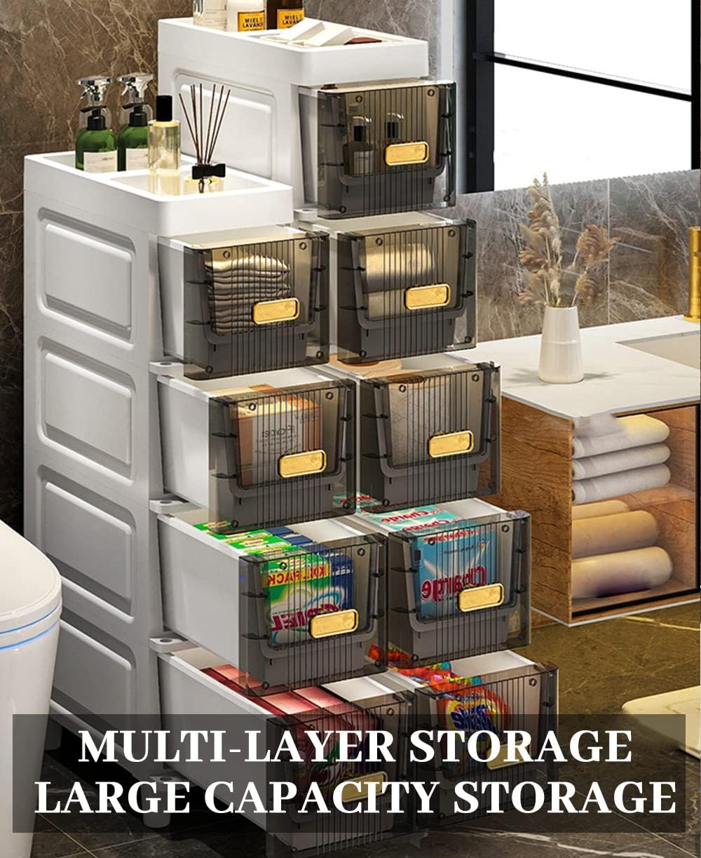 Hcosmy Slim Bathroom Cabinet, Bathroom Shelves, Waterproof Design, Standing Storage Cabinet with Slide Out Drawers, Narrow Floor Bathroom Organizer Next to Toilet (4)