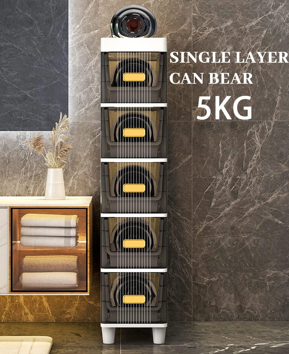 【Narrow and small design】This bathroom cabinet has 3 models (4-layer, 5-layer, 6-layer) to choose from. The compact cabinet can be placed in the corner or in the narrow space between the bathtub and the toilet to make full use of the space. Also, the small bathroom storage cabinet fits anywhere in your home, such as kitchen, bedroom, etc., which will simplify your home.