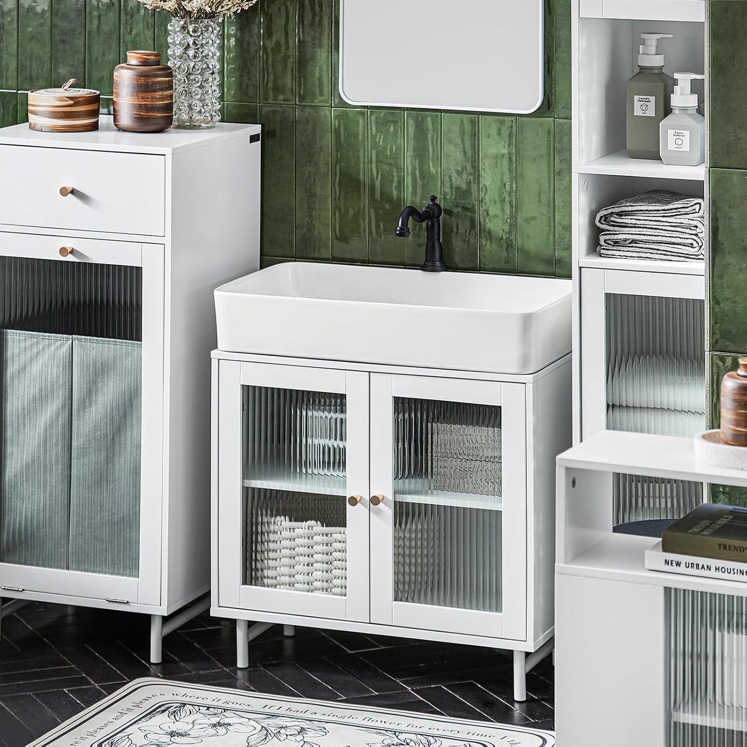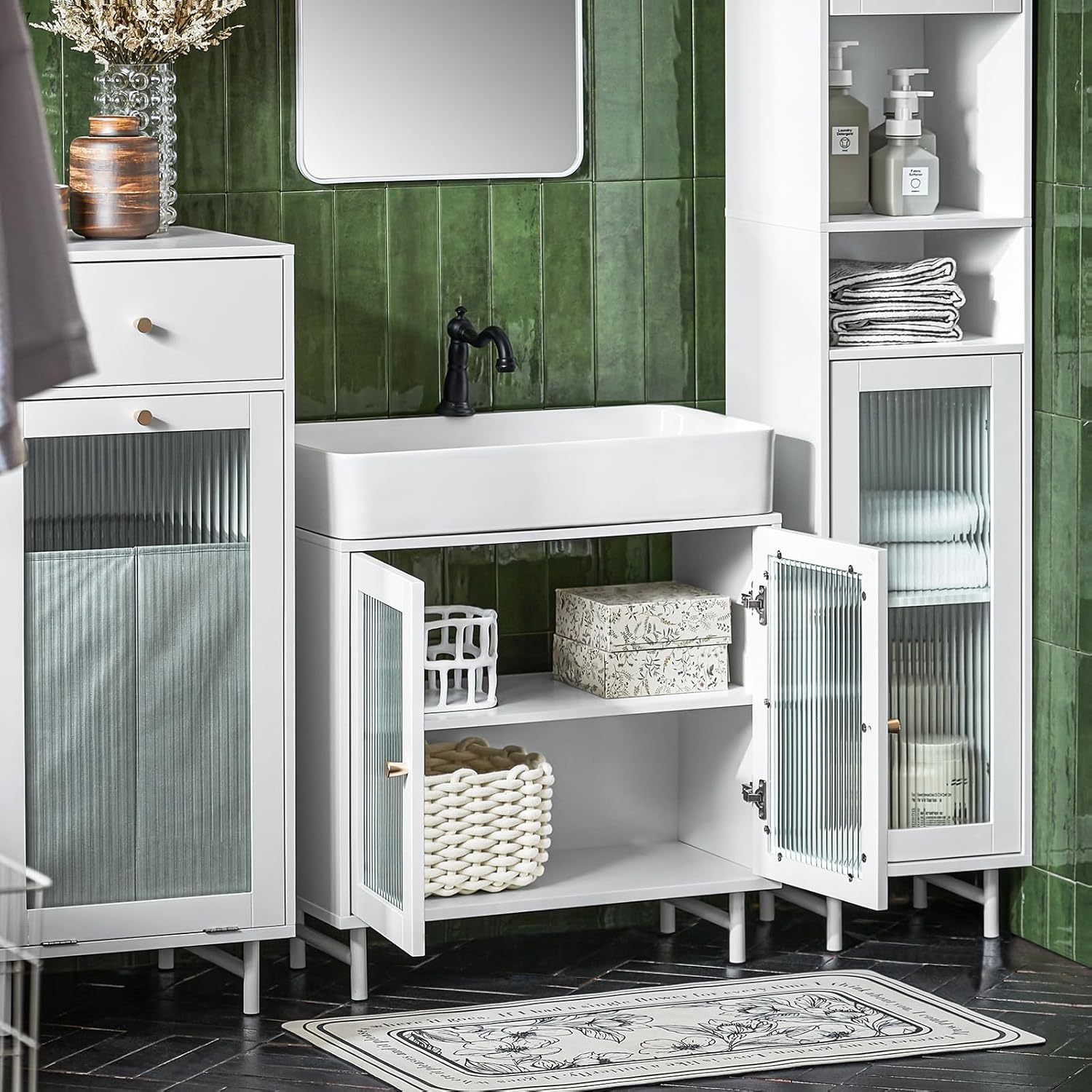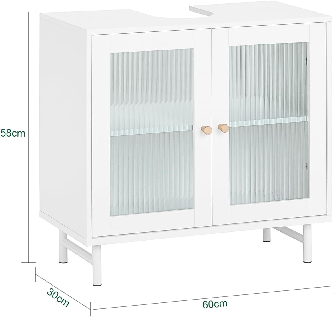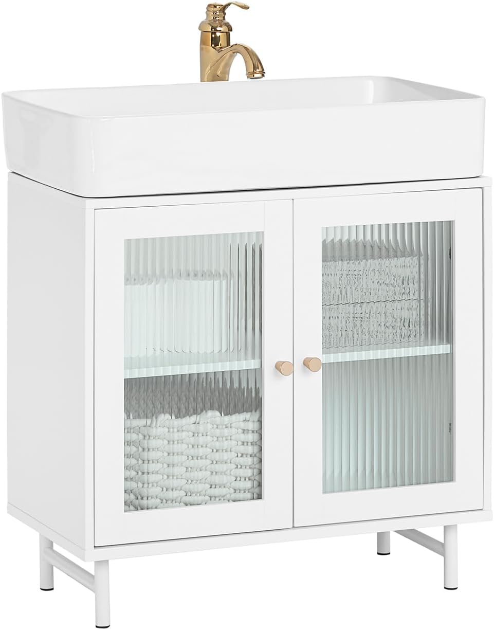 SoBuy BZR115-W Under Sink Unit with Glass Doors Bathroom Cabinet White 60 x 30 x 58 cm