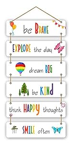 INSPIRATIONAL WALL DECOR – The colorful Wooden Wall Quote will be a beautiful addition to your Kid’s room. Children love hearing these positive sayings to give them extra self confidence! The Wall Decor will promote Positivity, Happiness and Warmth which the Kids Room should stand for.