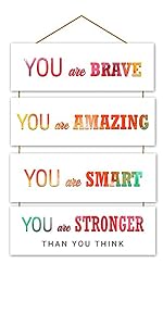 COVERS THE FULL WALL – Inspirational Sign measures 20 inches / 50 cm in length and 12 inches / 30 cm in Width, it is larger than most signs for Children bedroom decor for boys and girls room decor. The adjustable strings let you adjust the length as per your room décor.
