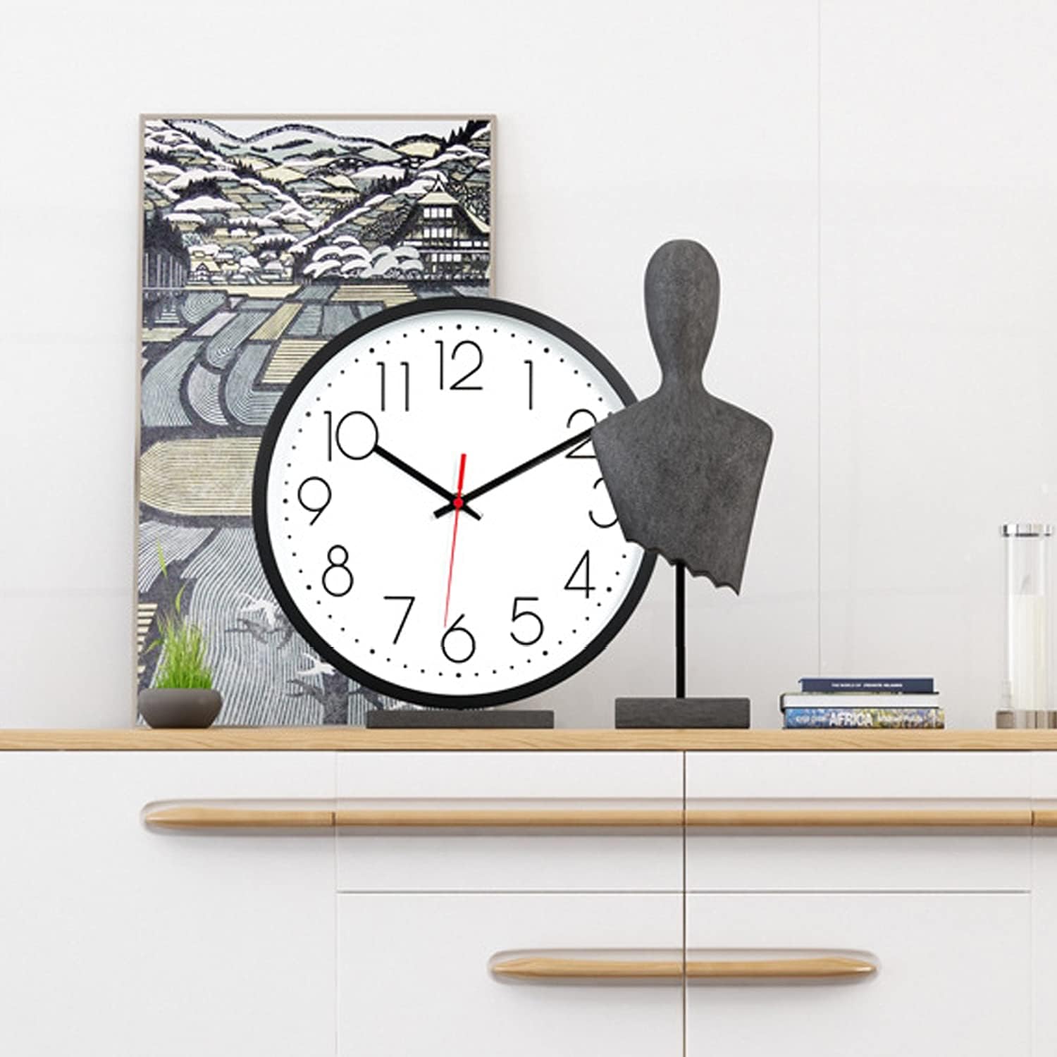 【Clear and Easy to Read】Decorative wall clock has a frame made from ABS plastics, the graphic minimalism of the white face and large 3D black numerals gives this wall clock a literally timeless appearance.