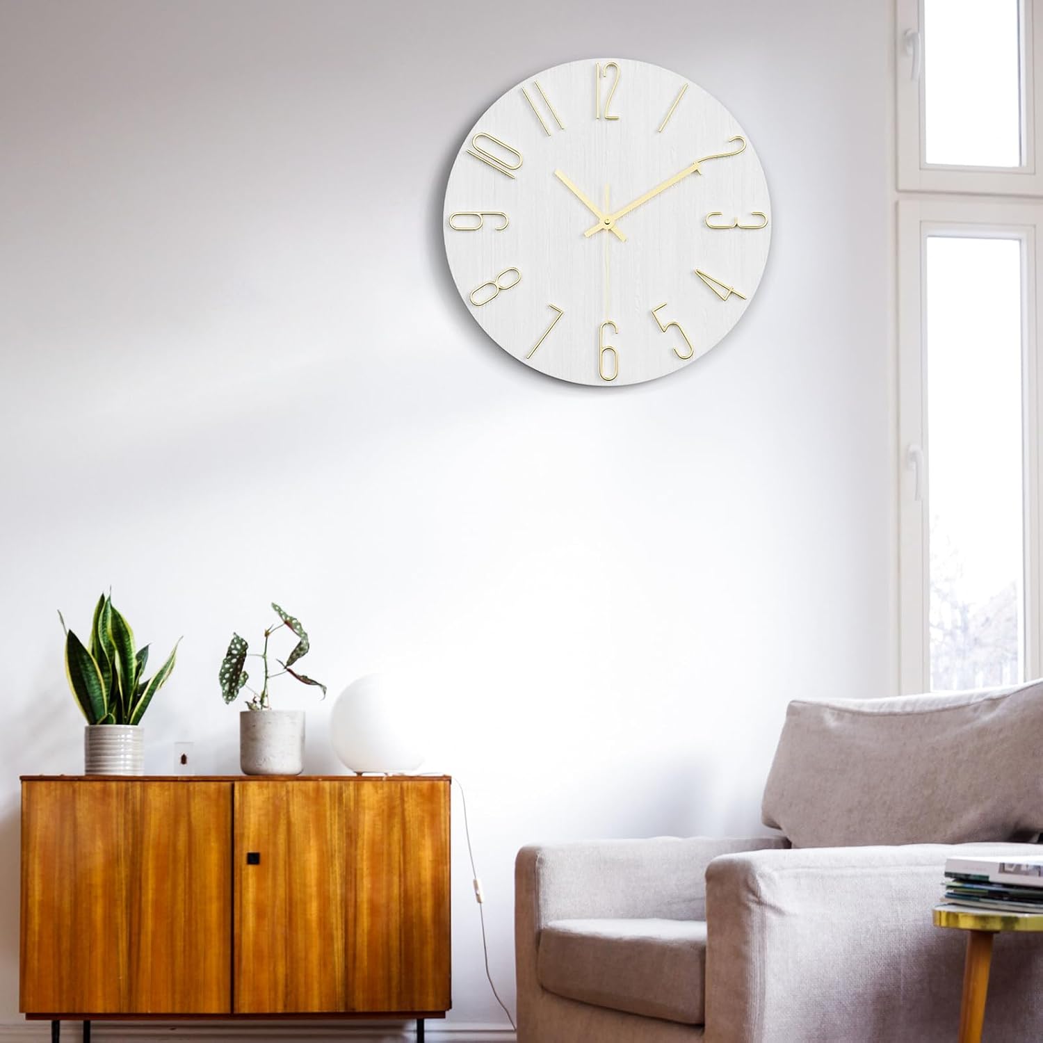 Wall Clock, 12 Inch Silent Non Ticking Battery Operated Modern Wall Clocks, Wooden Clock for Bedrrom, Kitchen, Living Room, School Office Home Decor (White)