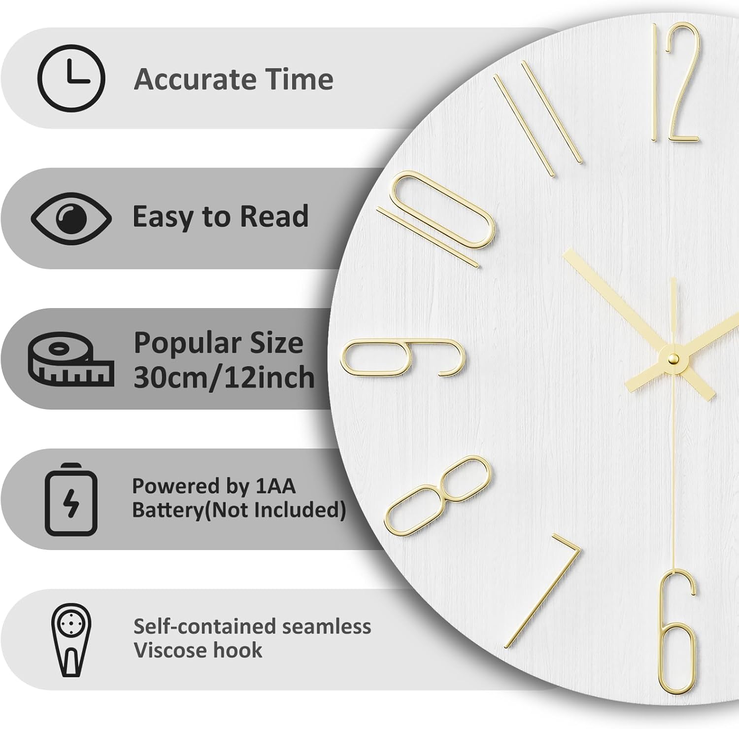 đăEasy to Readă- The unique wall clocks has large 3D relief numbers, electroplating process, the large numbers are clear to read.. Retro style wall clock, wood like design functional art is as beautiful as it is practical.