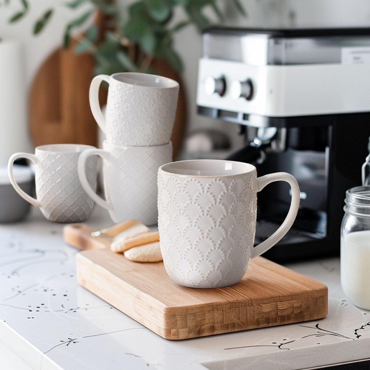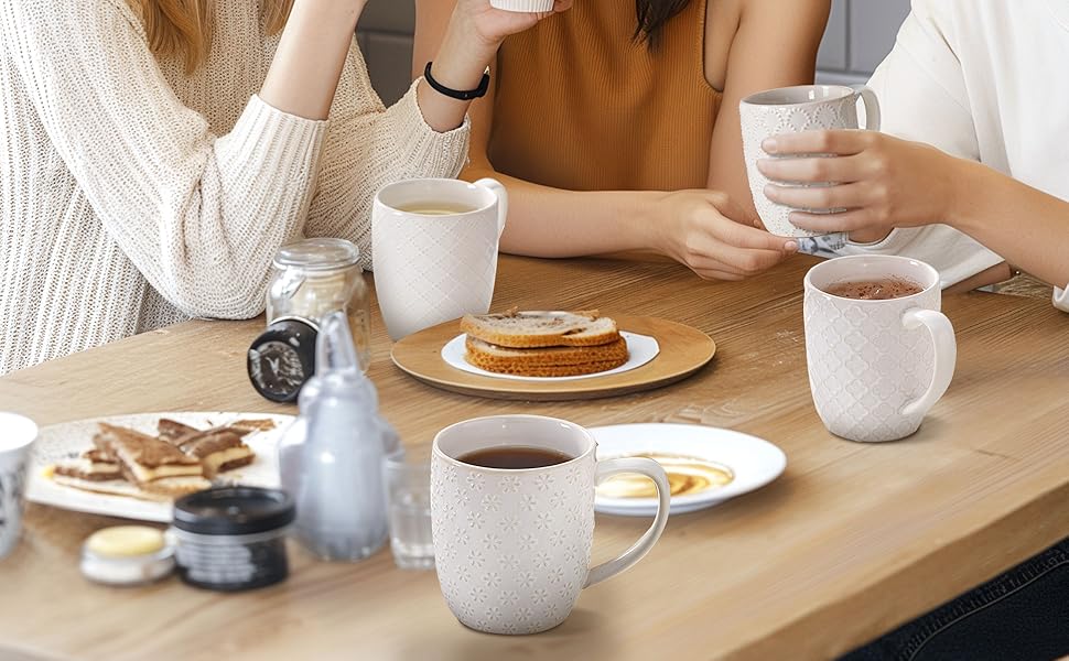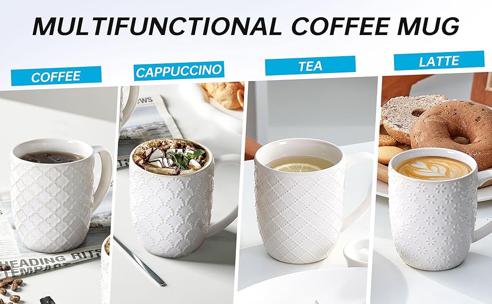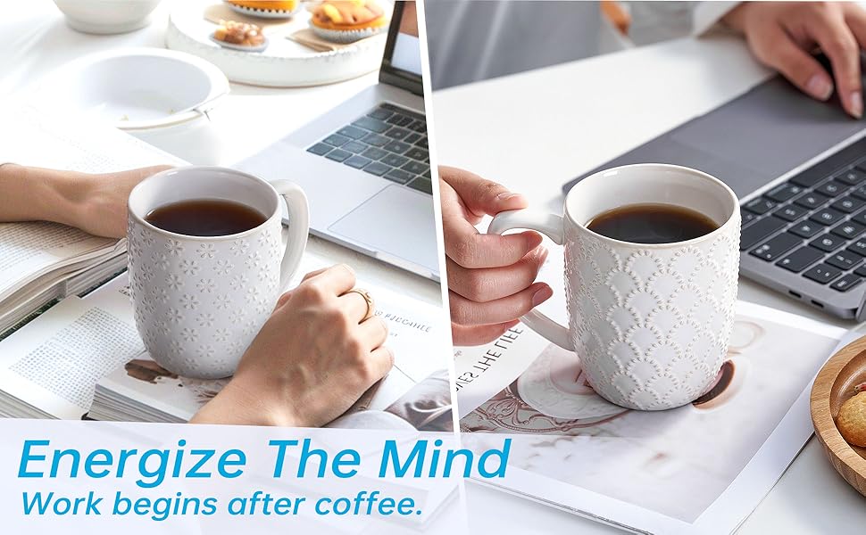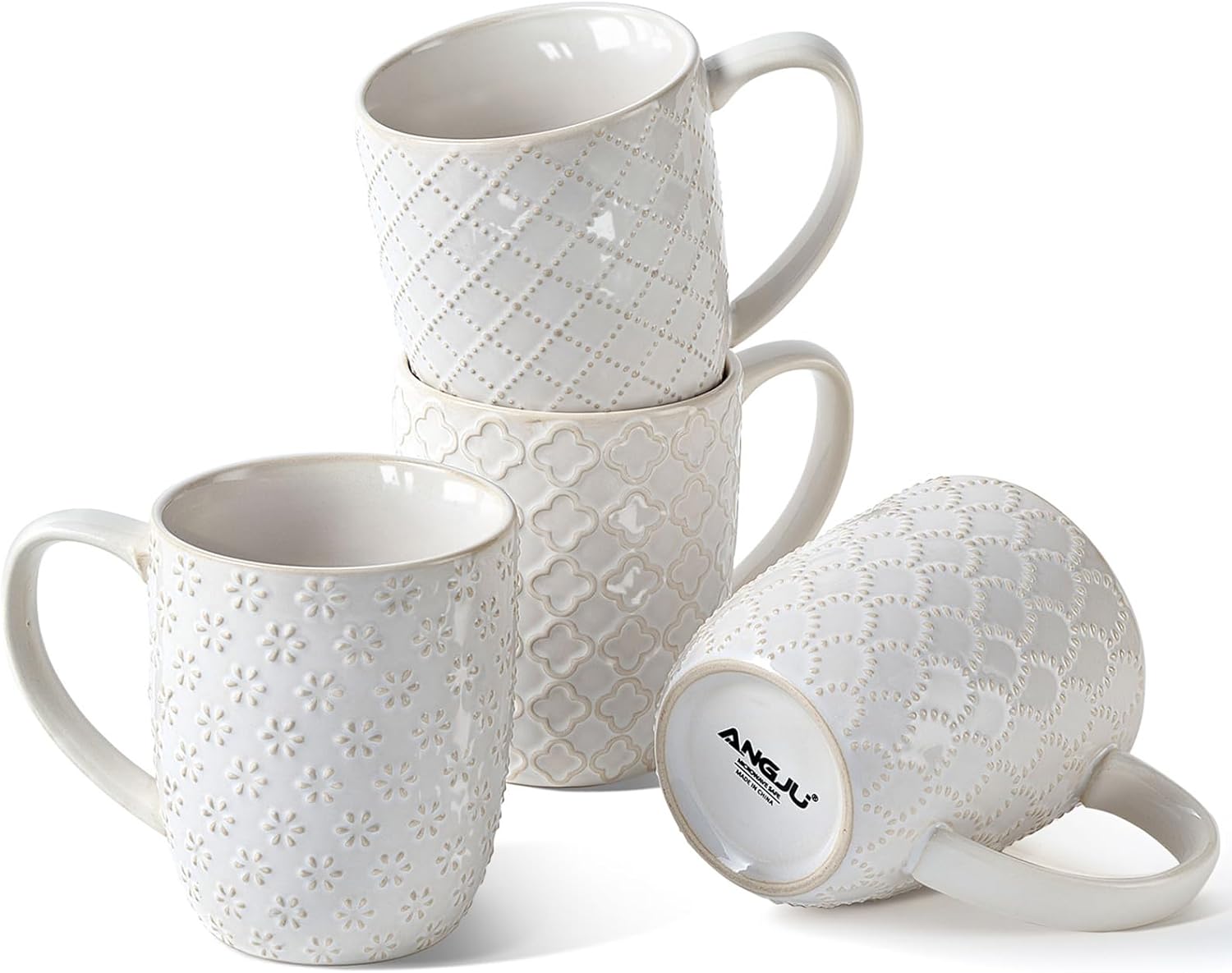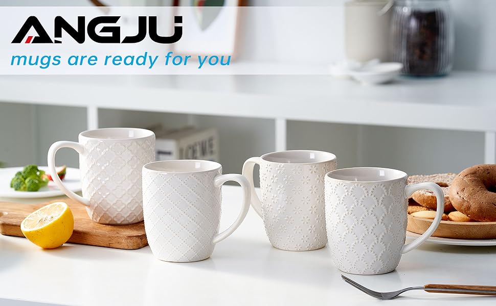 Angju Ceramic Coffee Mug Set of 4, Large Tea Cup With Handle,Embossmen – BUYO