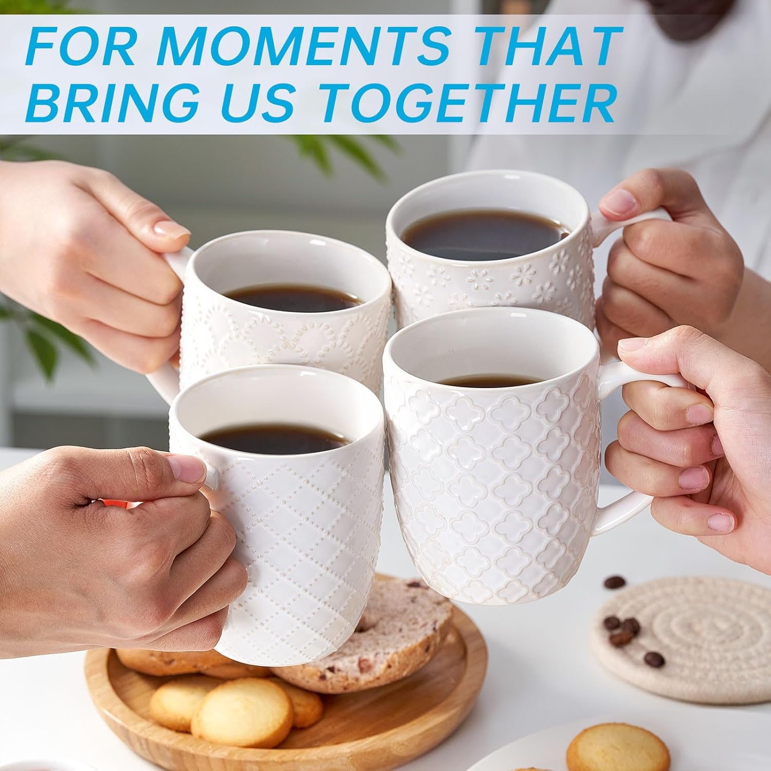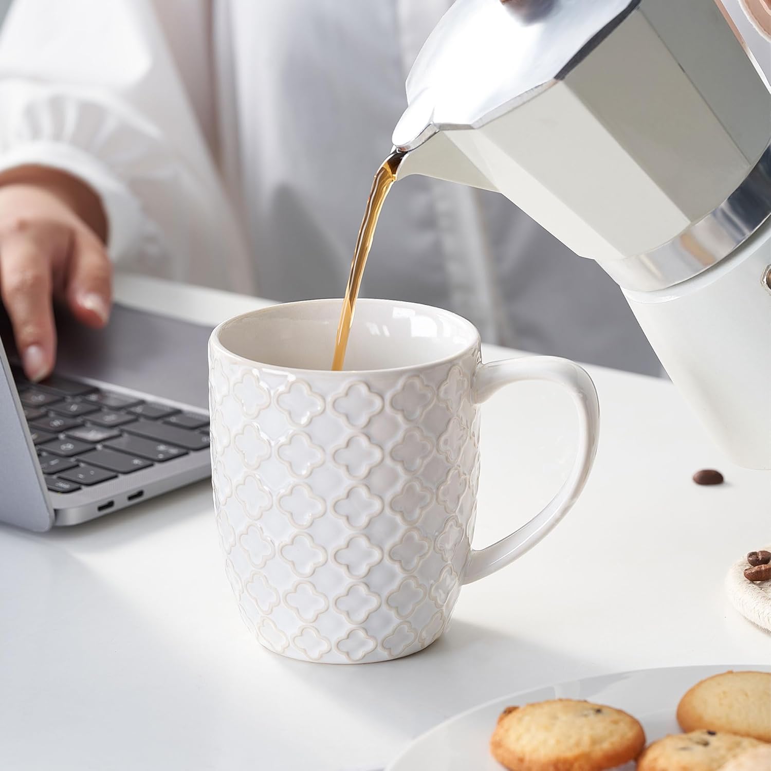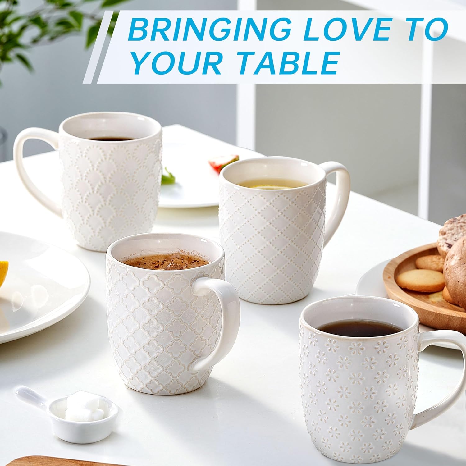 Angju Ceramic Coffee Mug Set of 4, Large Tea Cup With Handle,Embossmen – BUYO