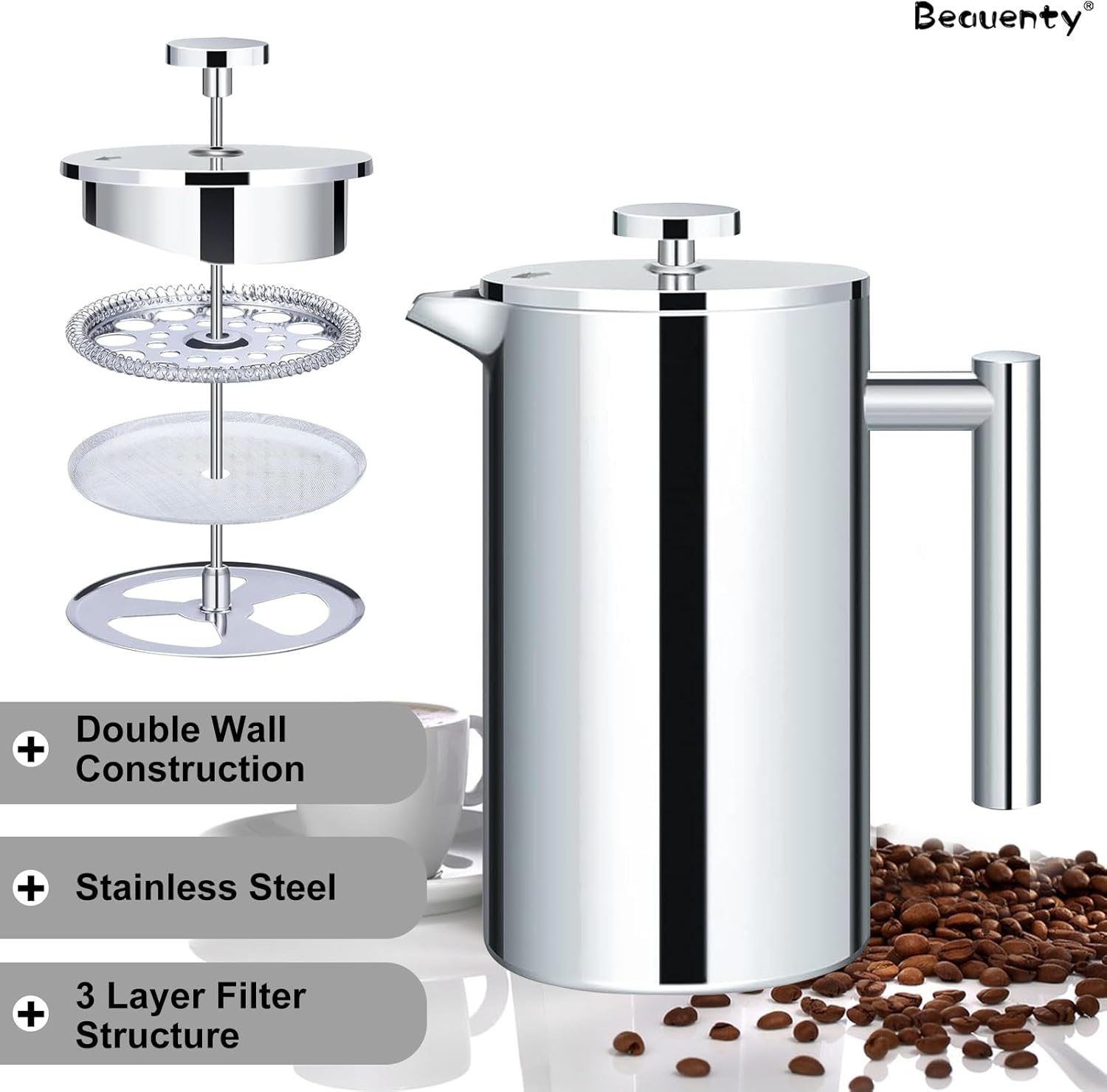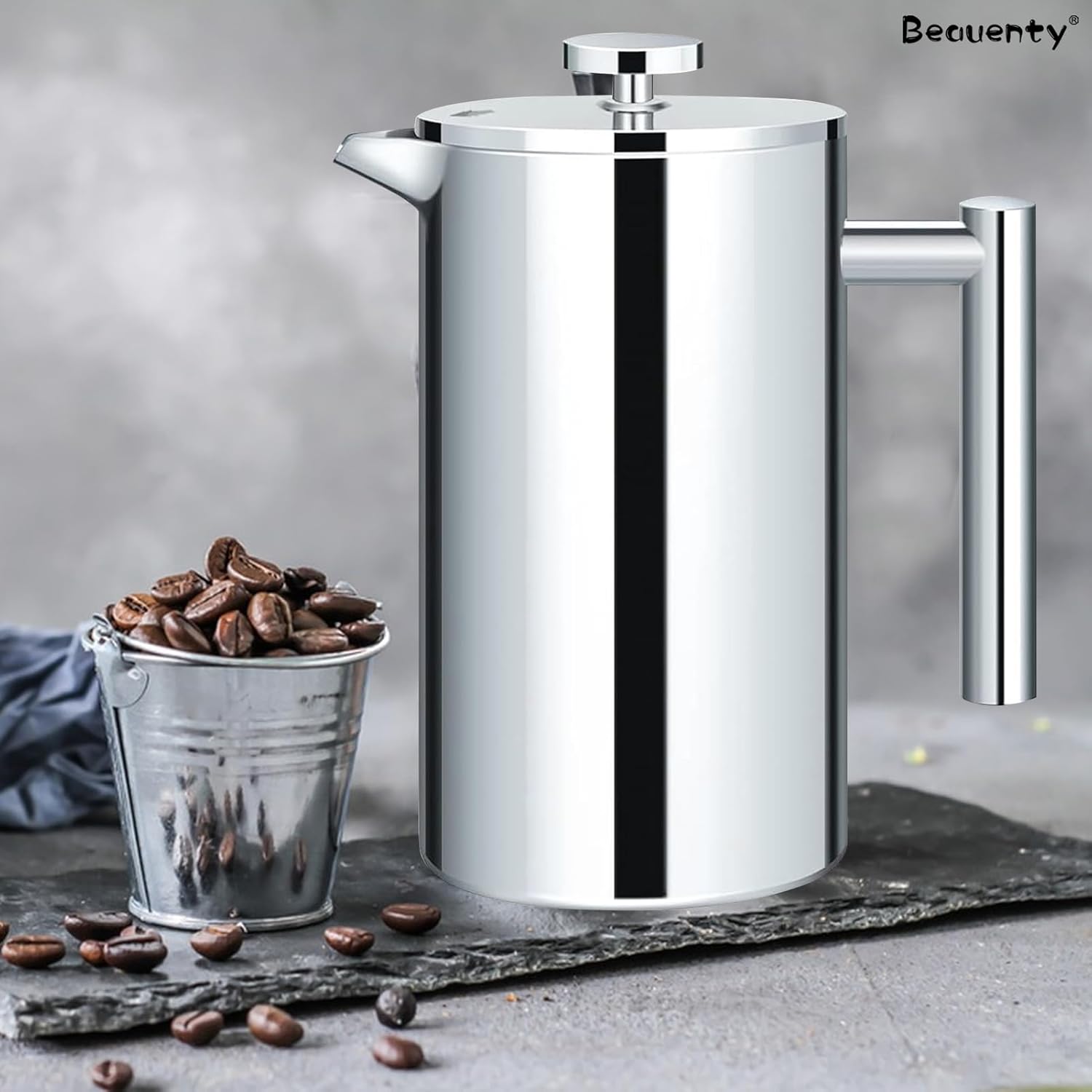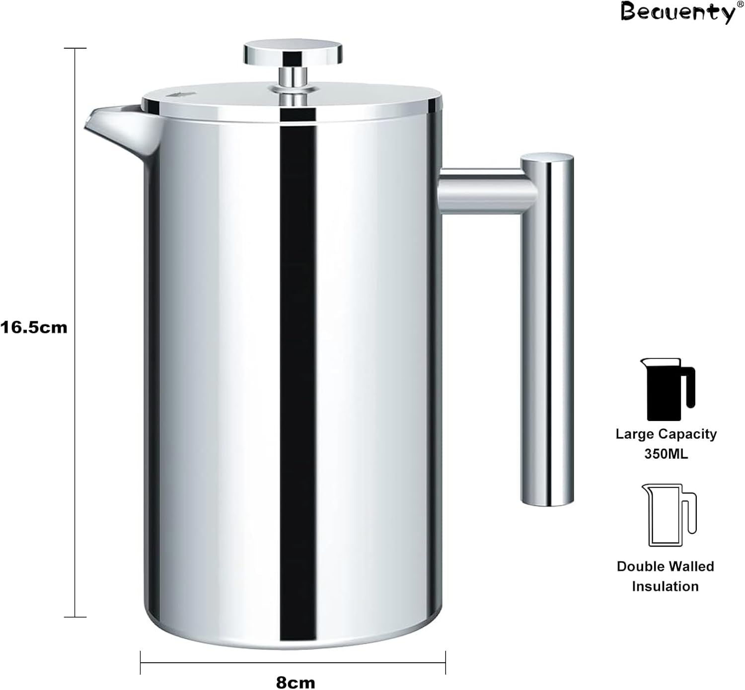 Beauenty Manual Italian Coffee Maker,Manual Espresso Tea Coffee Pot, Stainless Steel Insulated Classic Cafe Maker,350 ml,7 Cups Large Capacity