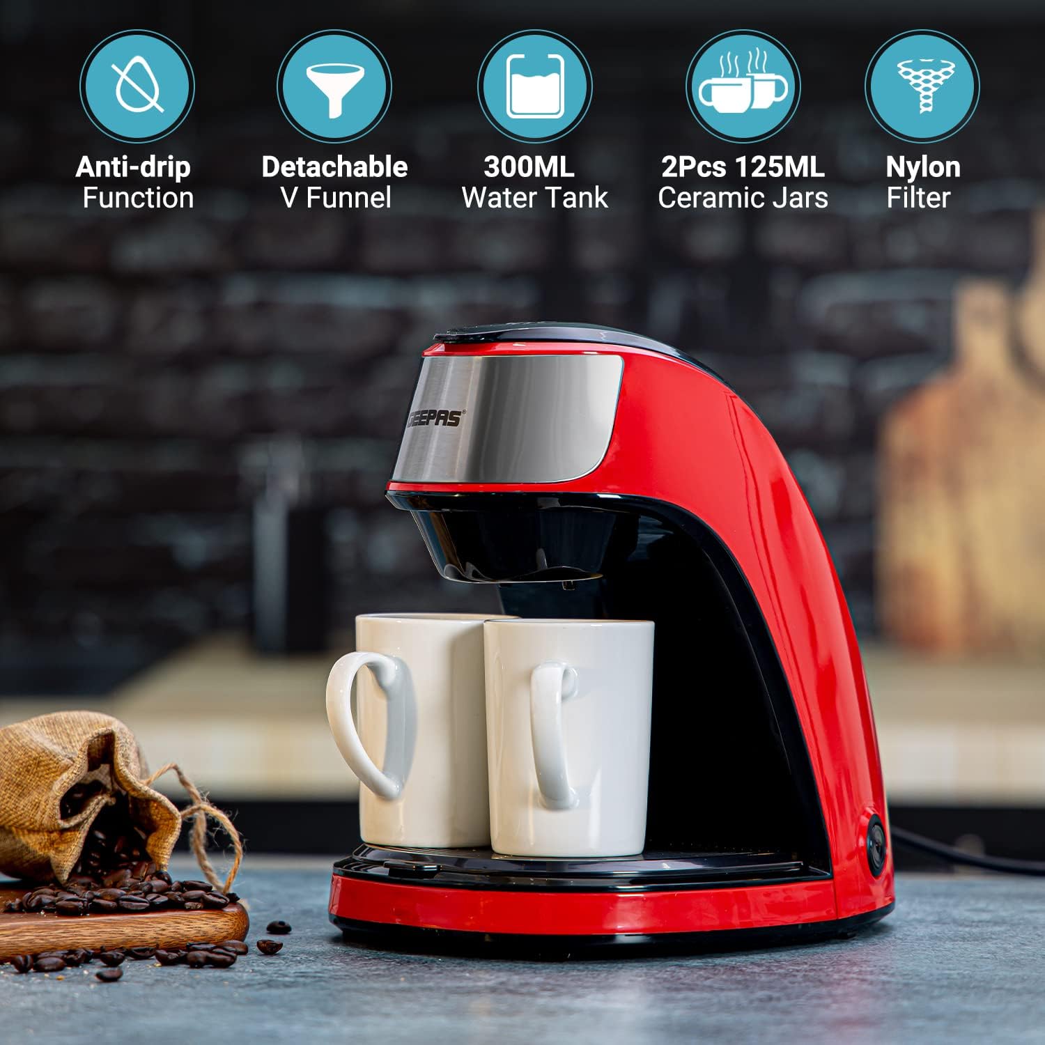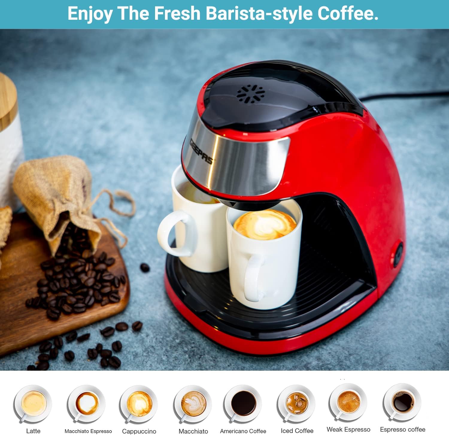 Geepas GCM41508 Espresso Machine Barista Electric Coffee Maker with Pump, 0.3 Liter Capacity, Red/Black