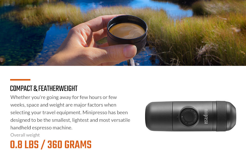Need to add the boiling water! Minipresso GR is your best choice to enjoy up to 50 ml of authentic espresso at home, in the office and on the go.