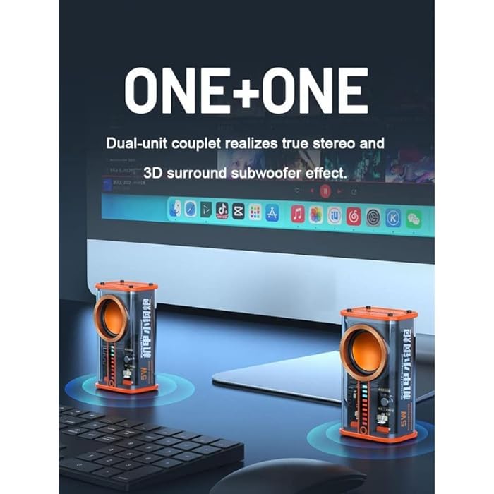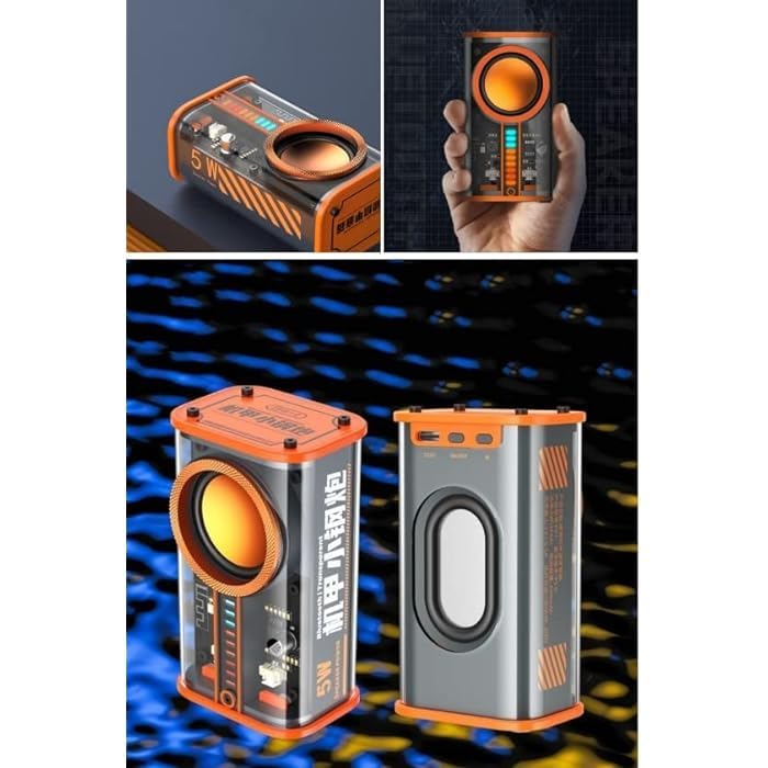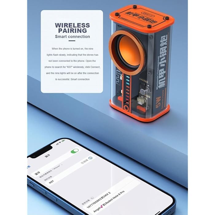 K07 Transparent Mini Wireless Bluetooth Speaker Pack of 2, 5W Portable Stereo Speakers with Bass, RGB Light, Bluetooth 5.0, Outdoor Rugged Design, Rechargeable Battery