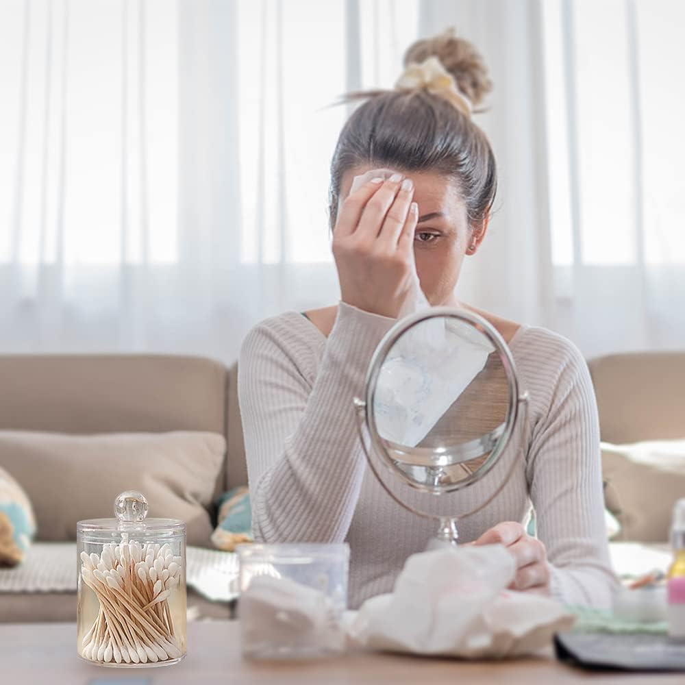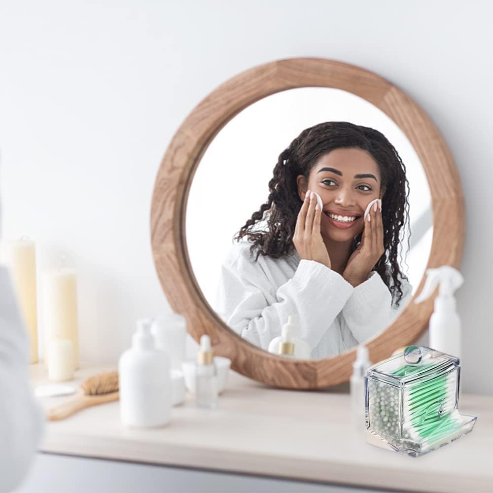 đăEasy to clean and useăThe transparent acrylic cotton pads canister combines beauty with order. There is enough space to store cotton swabs, and easy to wipe clean with soap and water. Very suitable for use in dressing tables and bathrooms. The unique design keeps it clean and easy to remove and store items.