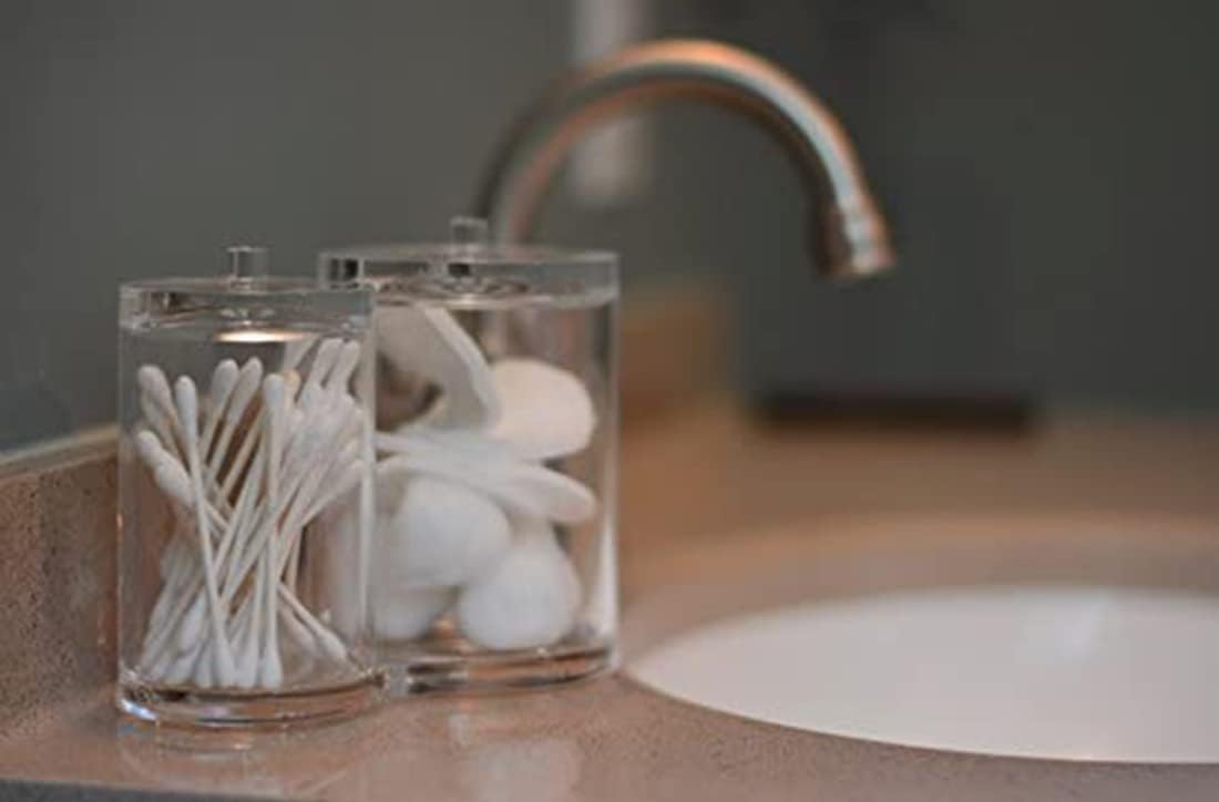 - ✿ Clear Cotton Ball and Swab Organizer:Store and organize Cotton Swabs, Cotton Balls, Makeup Pads, Nail polish, Eye Shadows and other bathroom accessories, Cotton swab box can guarantee long-lasting use for years in bathroom, bedroom, closet, drawer, dresser or on the countertop.