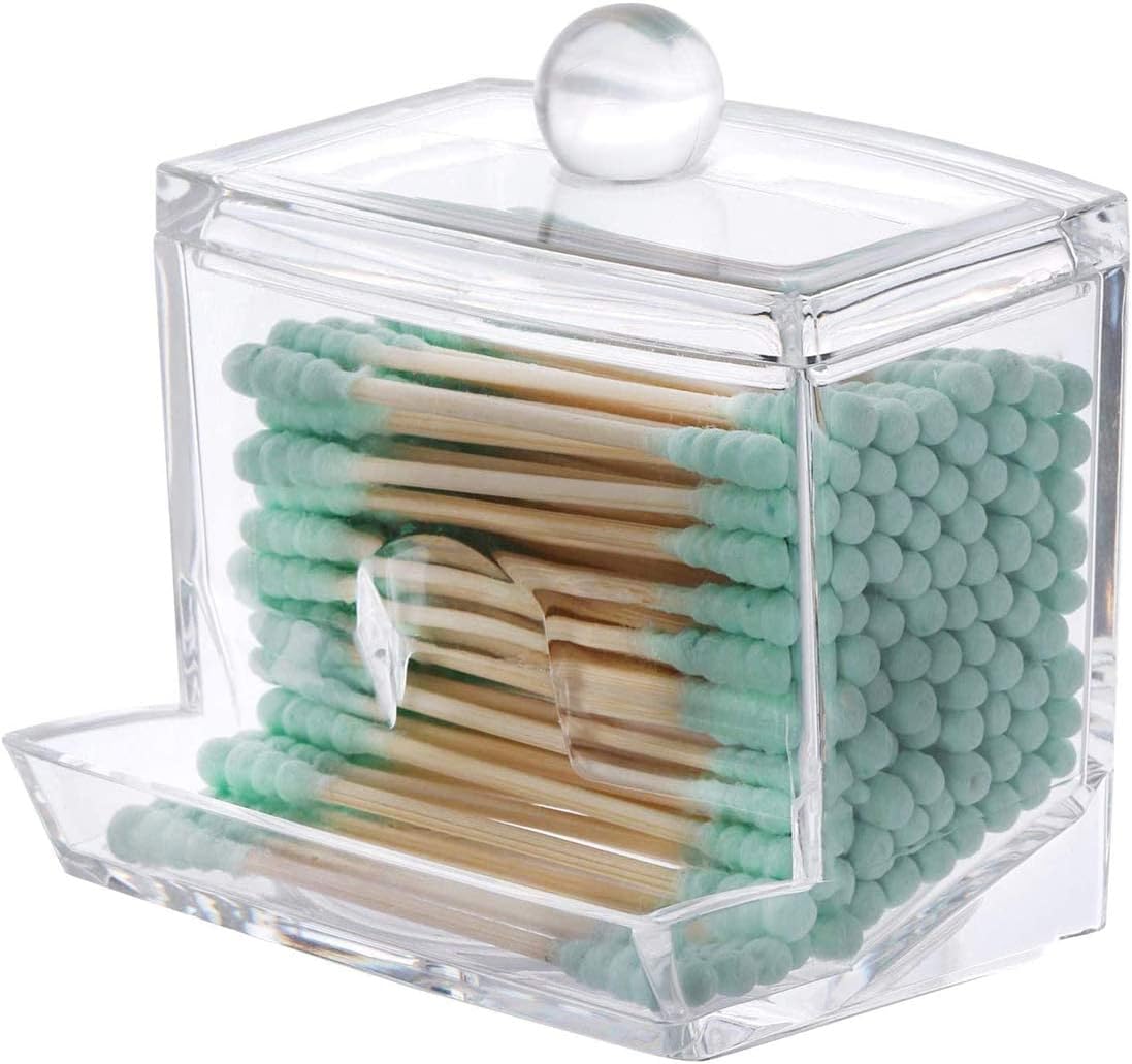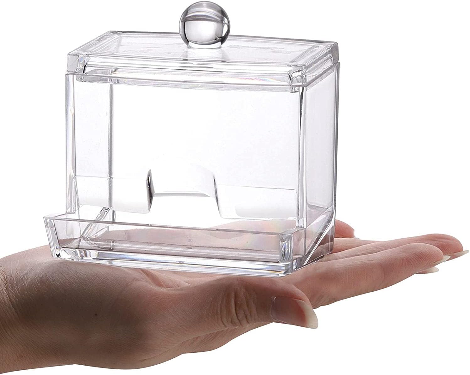 Cotton Swab Holder,Acrylic Holder for Cotton Swabs, Cotton Pads, Square Bathroom Jar, Storage Vanity, Clear Organizer, for Storage Easy Take Cotton Swabs Holder Tips Holder(1Pack)