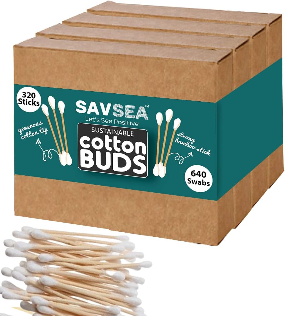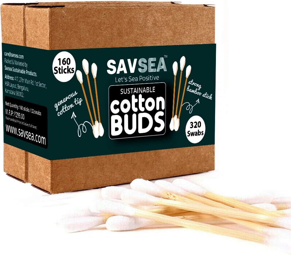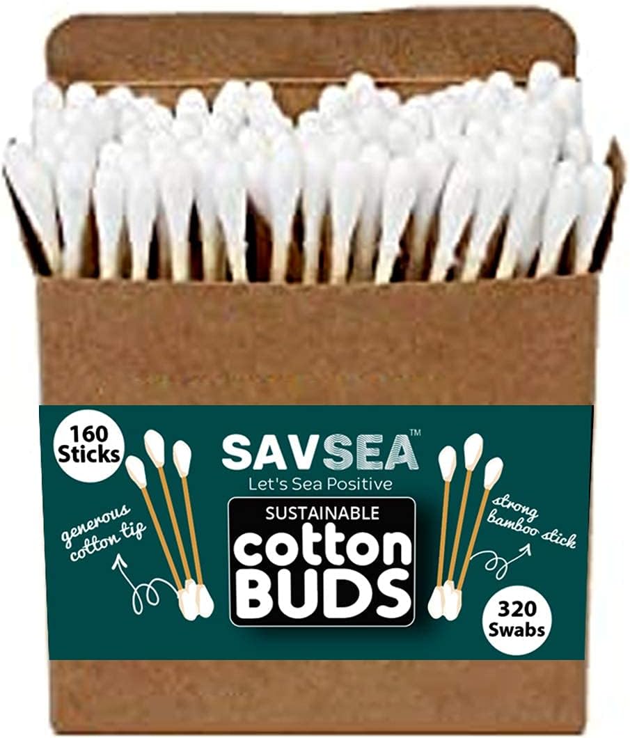 SAVSEA Bamboo Cotton Earbuds, Swabs, Q Tips, 160 Stems, 320 Swabs, Sui – BUYO