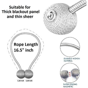 NATURAL MATERIAL - High-End Natural Upgraded Strong Magnet & Polyester Fabric Handcrafted rope and durable; Cross weave lines friendly to your curtains, smooth and anti-rust, perfect for protecting your draperies and without the need for tools or drilling holes into trim or walls.