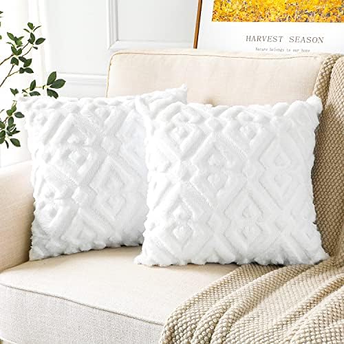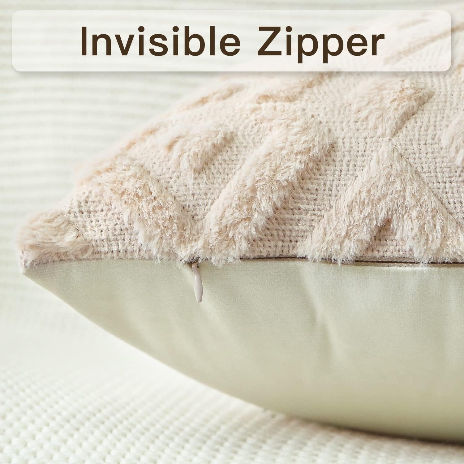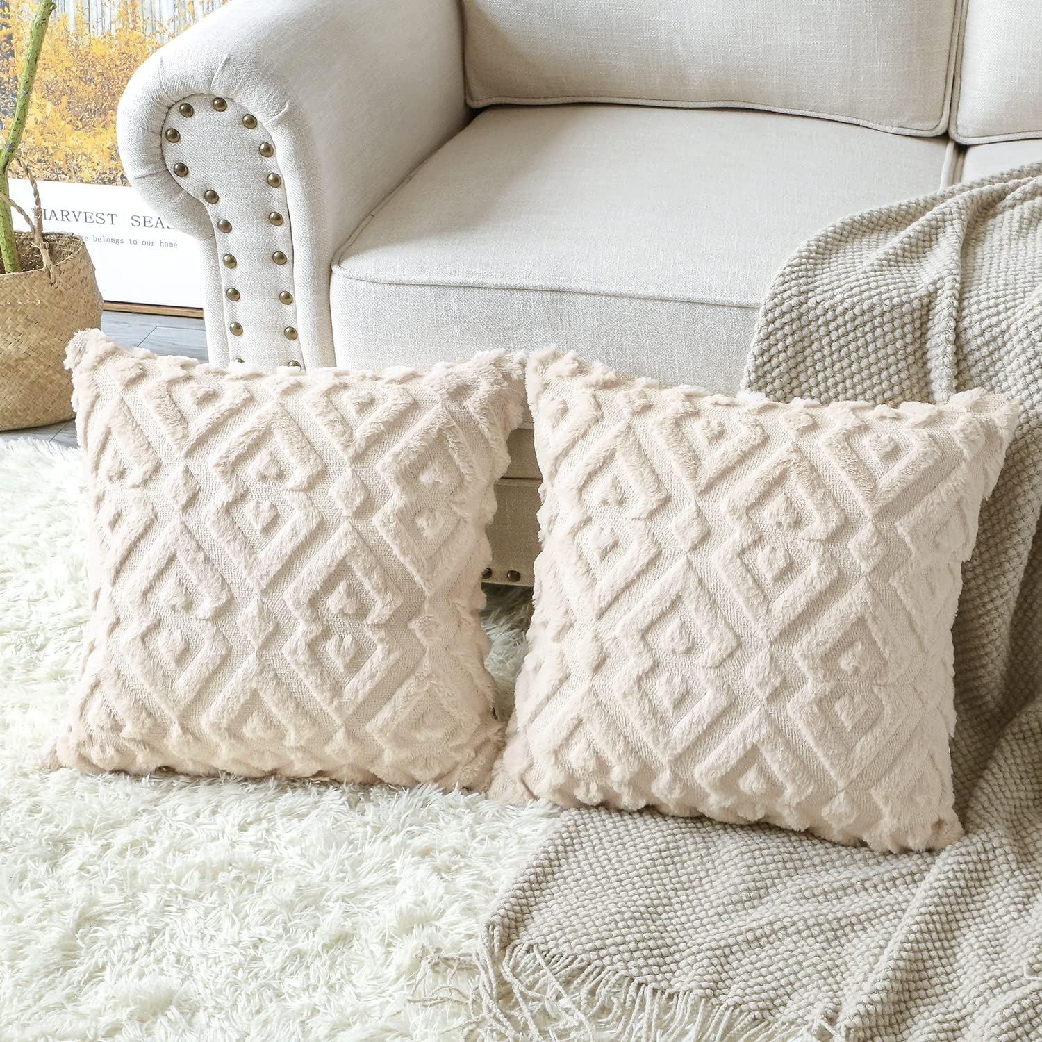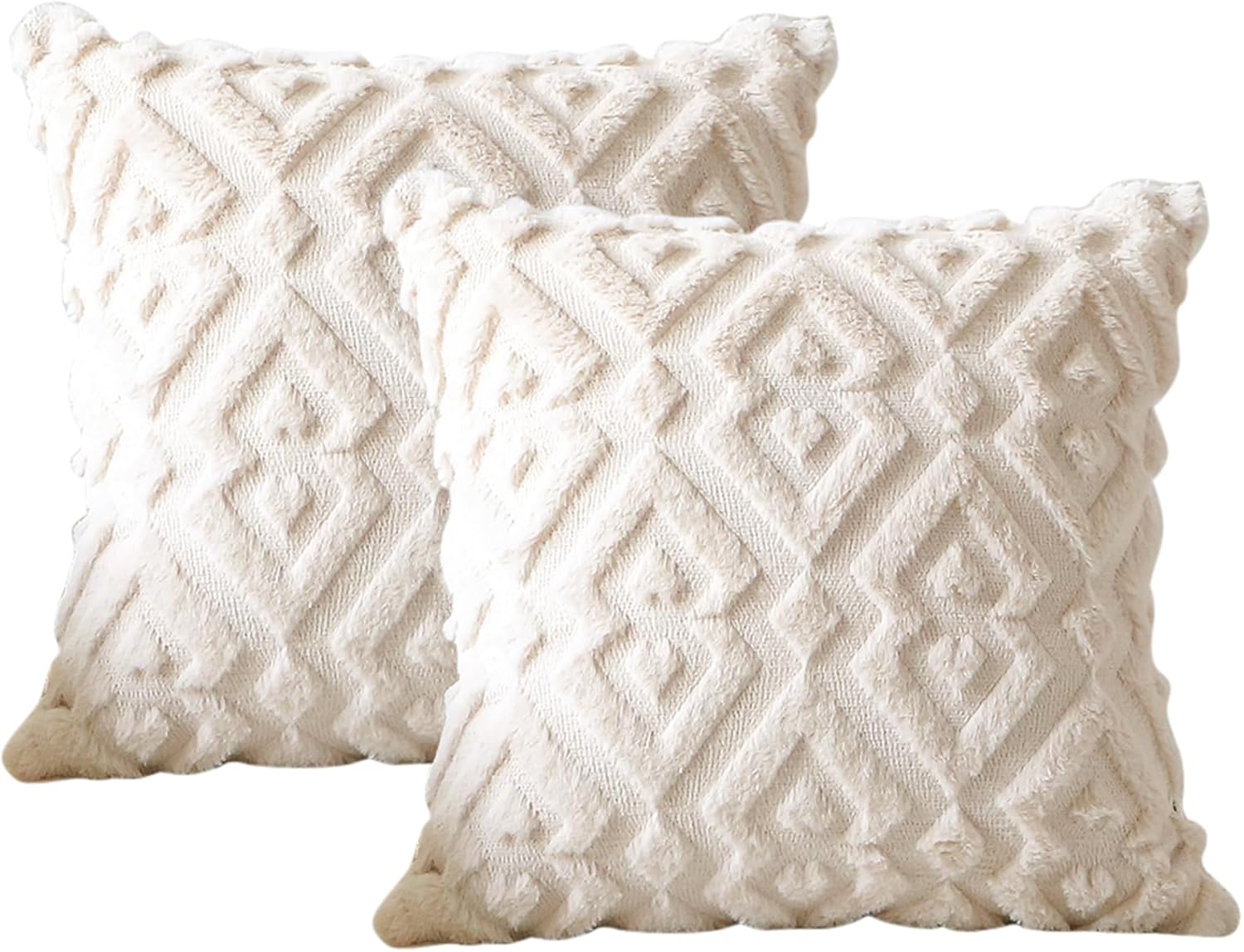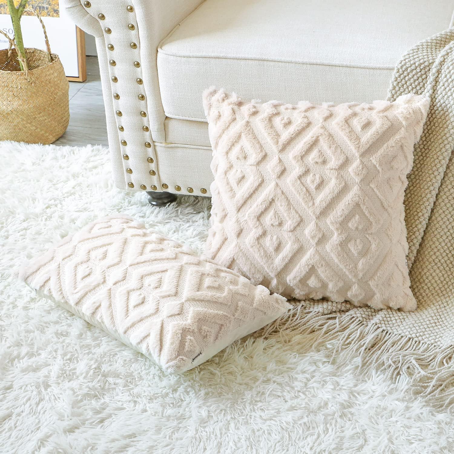 Artscope Set of 2 Soft Plush Short Wool Velvet Decorative Cushion Covers Luxury Style for Sofa Bedroom - Modern Diamond Shape Beige, 50 x 50 cm