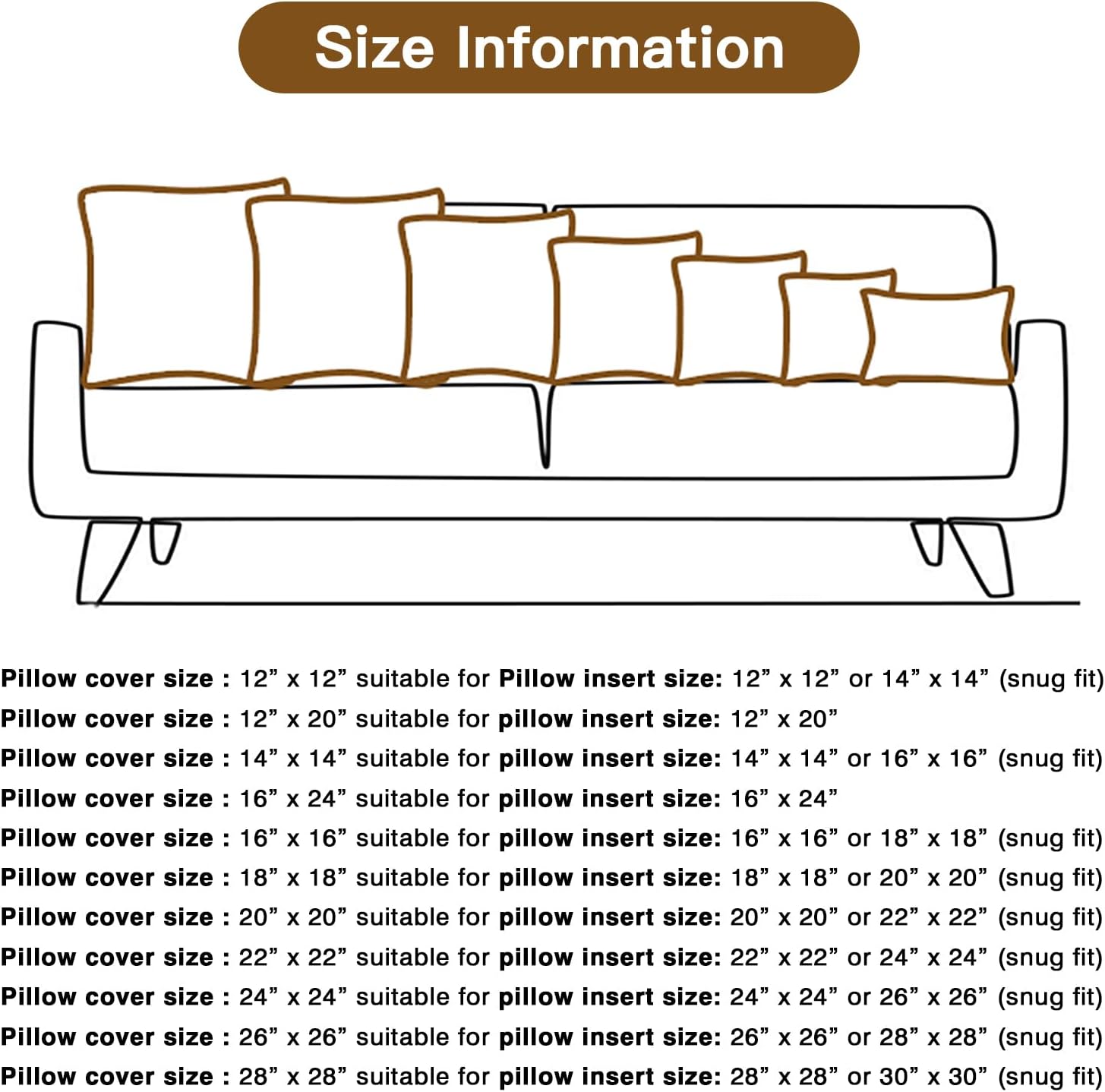 SIZE - 50 x 50 CM, 20 x 20 inches. If you want it more fluffy, please choose the larger pillow insert than the 1-2 inch pillowcase, it is better. Package includes 2 cushion covers ONLY.