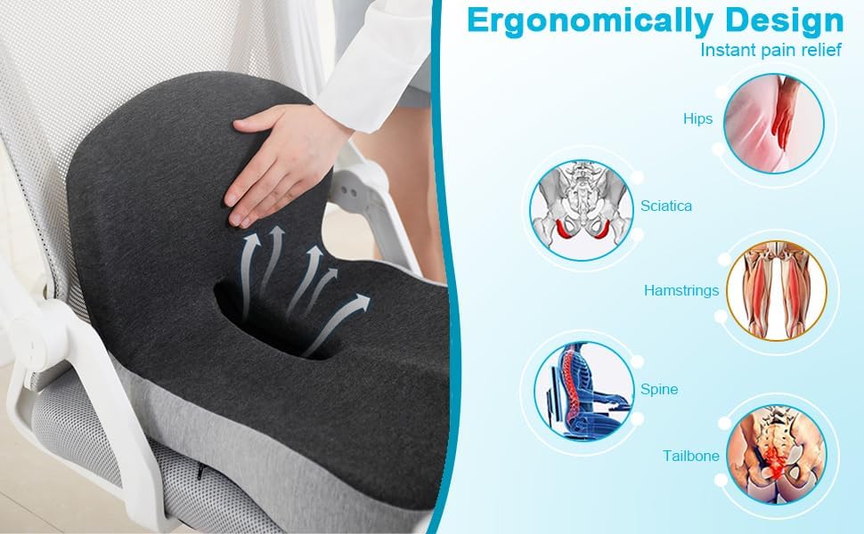 L-shaped ergonomic design - They’re engineered to provide the perfect blend of comfort and support to minimize fatigue, discomfort and promote healthy posture. However, a normal seat cushion may not offer enough back support, especially if you're spending eight hours or more per day seated in the office. If what you need is more than a cushion, then you might consider upgrading to an ergonomic seat cushion. Best back support & coccyx pillow tailbone cushion