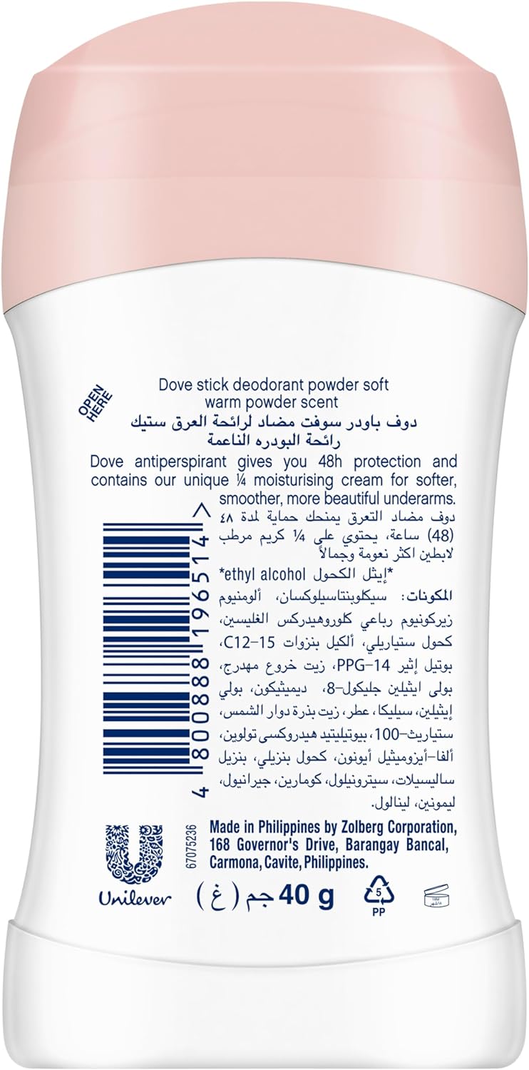 Dove Antiperspirant Deodorant, Powder Soft Stick provides up to 48 hours of confidence-boosting antiperspirant protection against underarm wetness and odor.