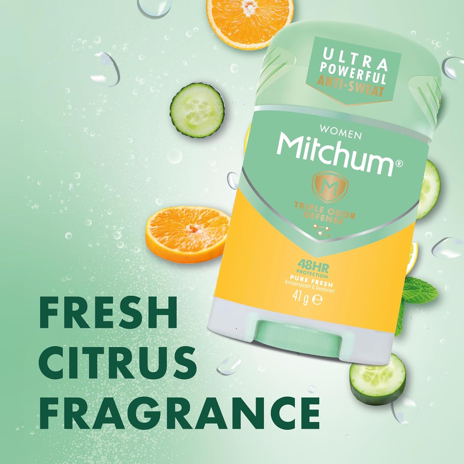Mitchum Women Triple Odor Defense 48HR Protection Deodorant Stick & Antiperspirant (41g) Pure Fresh, Dermatologist Tested,41 g (Pack of 1)