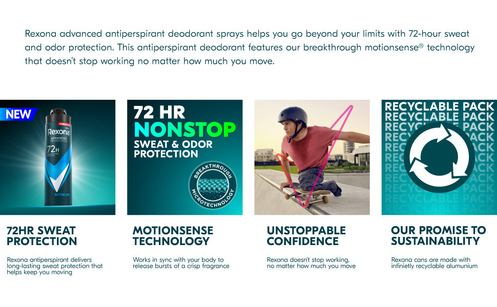 72-HOUR NONSTOP PROTECTION*: Rexona Men Xtra Cool Antiperspirant Deodorant Spray with 72-hour unbeatable sweat and odor protection for nonstop confidence.