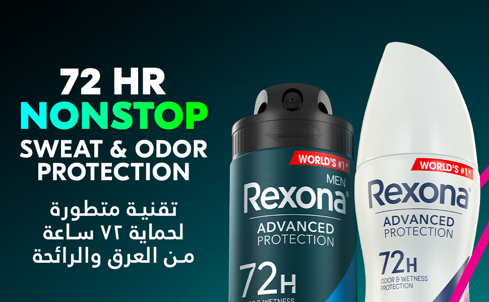 72-HOUR NONSTOP PROTECTION - Rexona Men Antibacterial, Invisible Antiperspirant Deodorant Spray with 72-hour unbeatable sweat and odor protection for nonstop confidence.