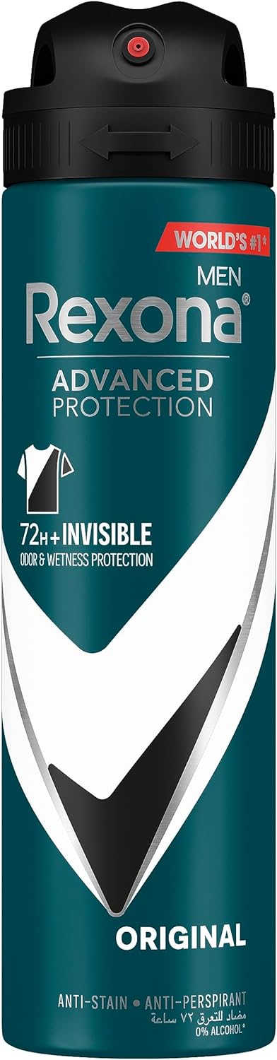 REXONA Men Antiperspirant Deodorant Spray, 72 hour sweat & odor protection*, Antibacterial + Invisible, with MotionSense technology, 150ml