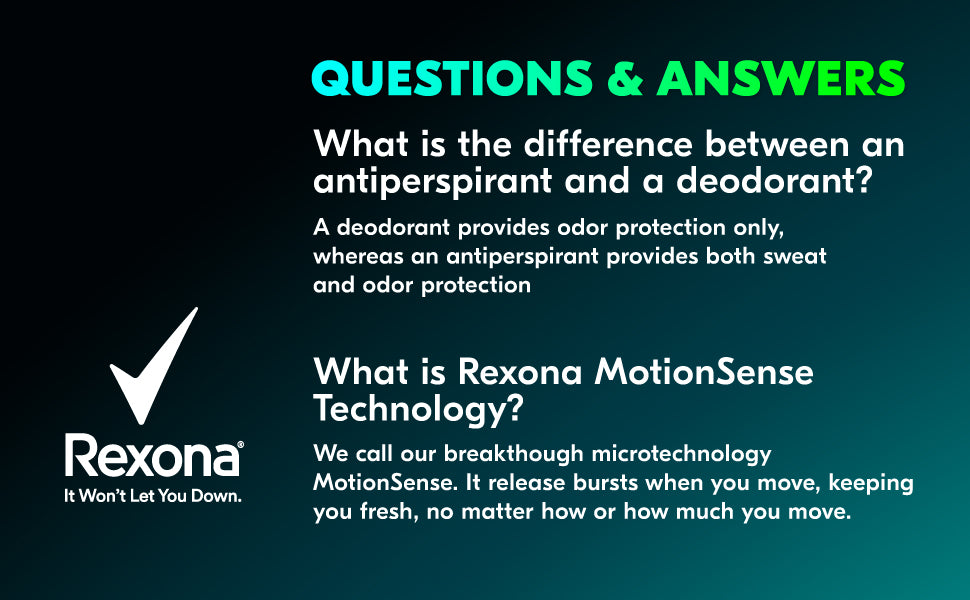 GOES ON INSTANTLY DRY WITH NO STAINS- Rexona antiperspirant deodorant spray goes on instantly dry so you can take on the day. Simply spray, shake, and move. Dermatologically tested and alcohol free.