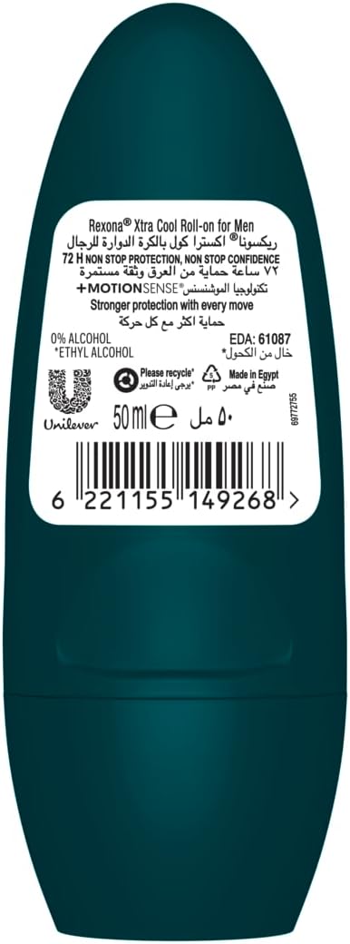 72-HOUR NONSTOP PROTECTION*: Rexona Men Xtra Cool Antiperspirant Deodorant Roll On with 72-hour unbeatable sweat and odor protection for nonstop confidence.