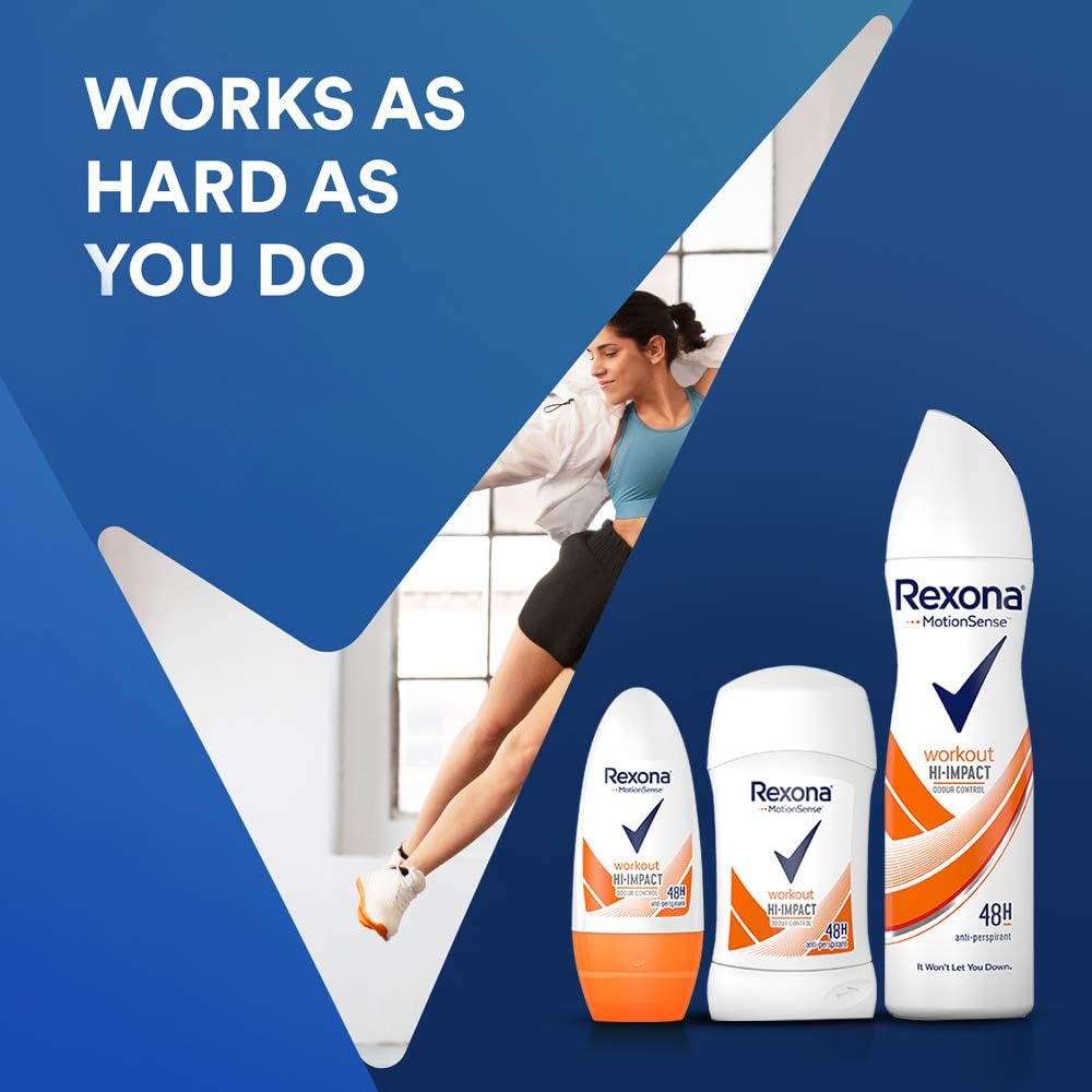 UNSTOPPABLE EFFICACY: Stay fresh, longer with this antiperspirant for Women. Rexona Women HI-Impact Workout Antiperspirant Deodorant features a refreshing scent to keep you feeling energized.