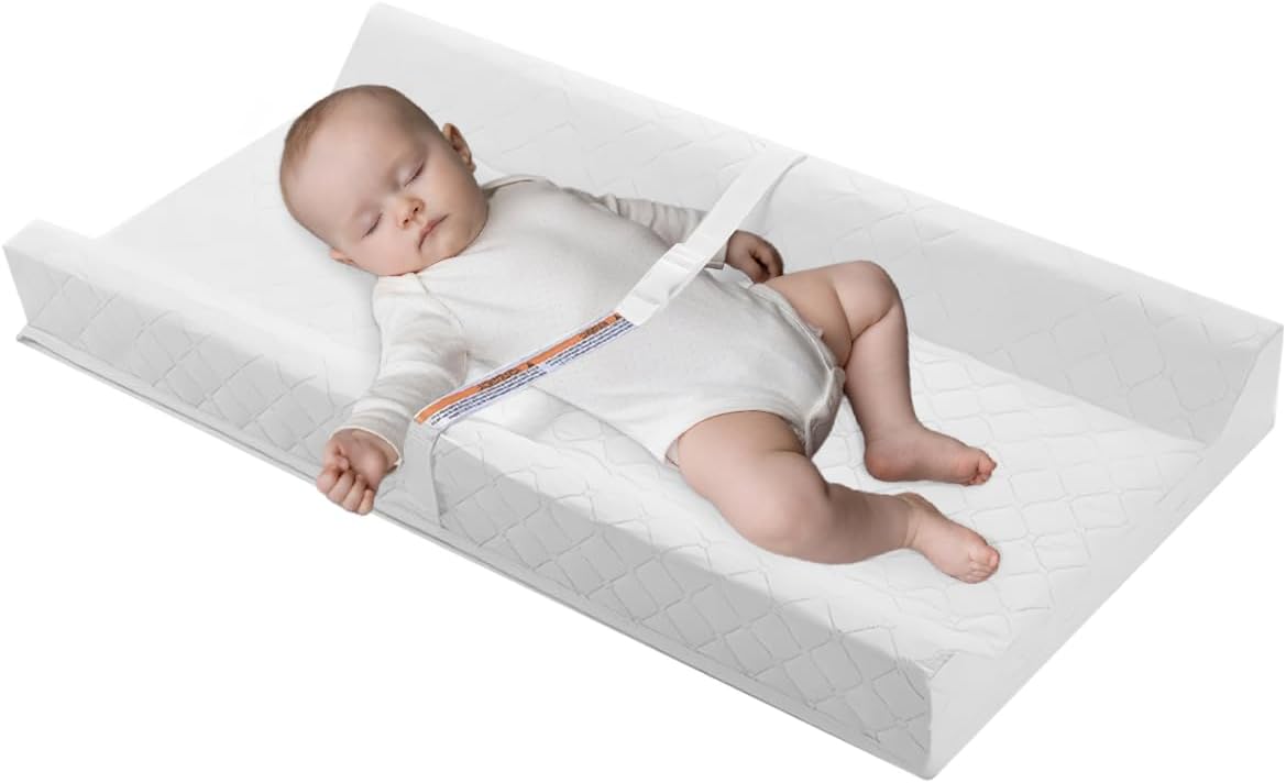 Azulmart Baby Changing Pad Infant Diaper Changing Table Pad Cover Waterproof Contour Dresser Top Mat, Breathable Diaper Pad Travel Non-Slip Change Mat Sheet with Safety Strap Hypoallergenic Washable