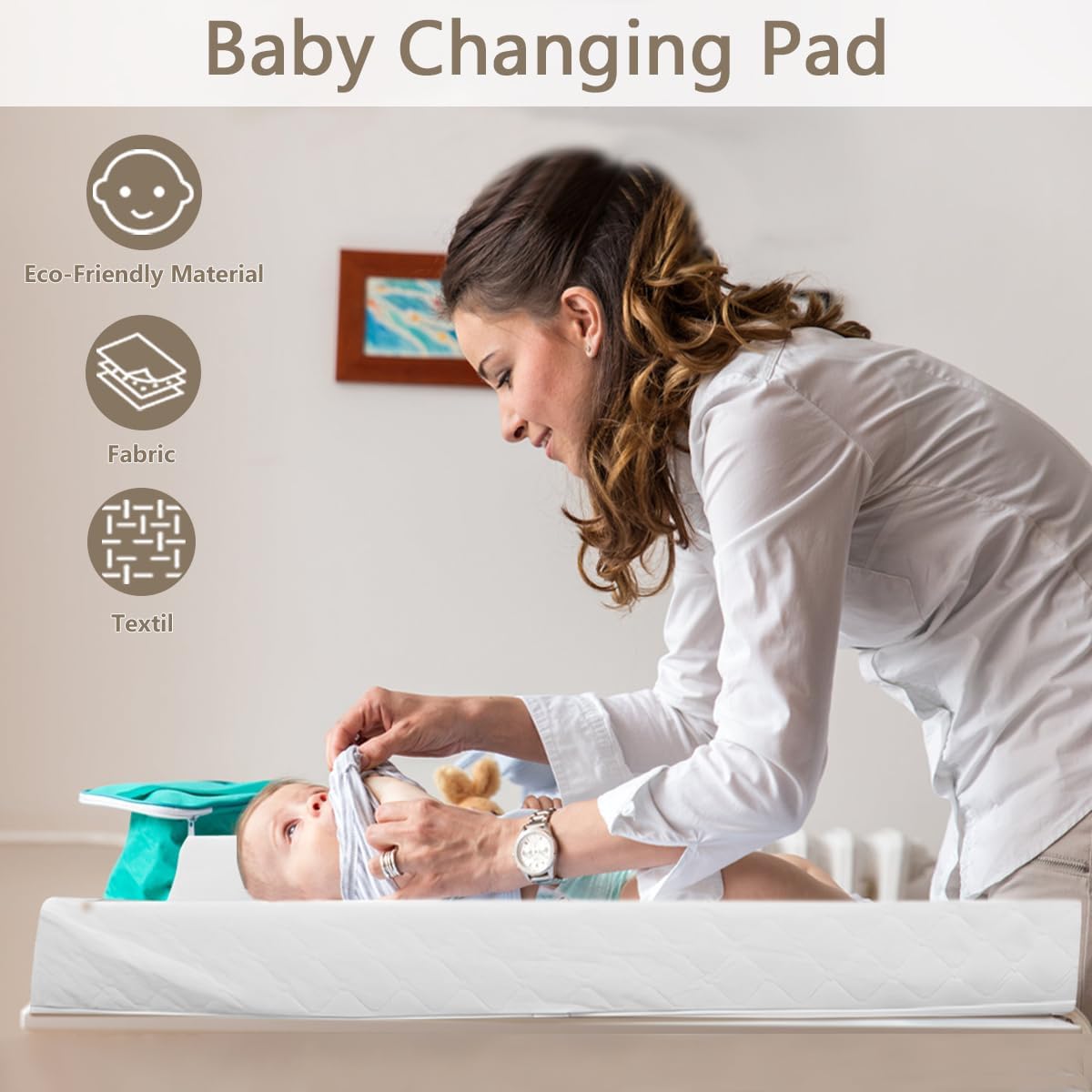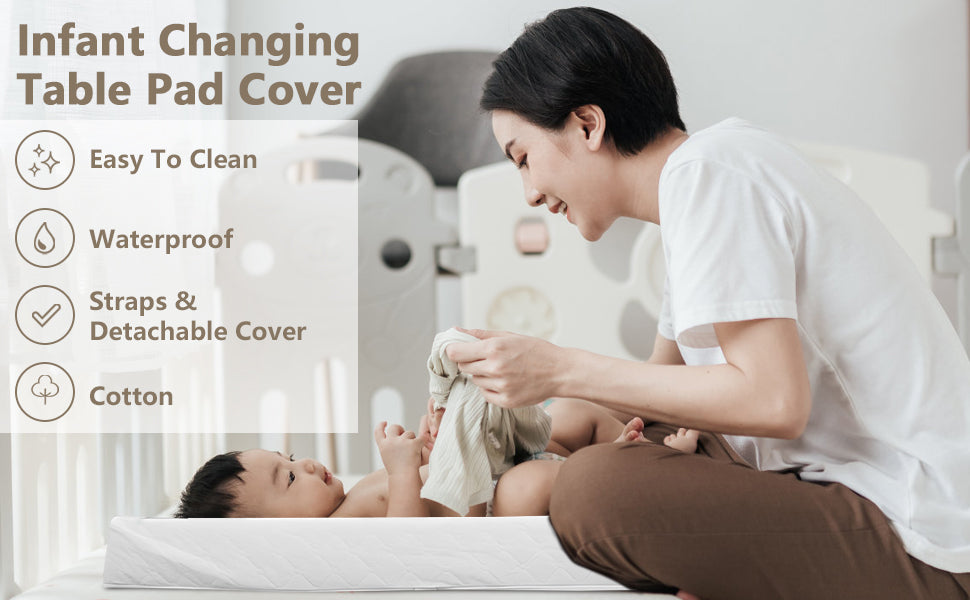 【Waterproof Cover】The diaper changing table cover uses a PEVA waterproof cover to effectively prevent the penetration of liquids and dirt. The PEVA baby changing table mat is easy to clean and helps prevent liquids from seeping into the cover, creating a more hygienic changing surface. Firm and comfortable soy reinforced foam of this changing pad sheets for kids featuring anti-stress sponge padding that makes diaper changes a more enjoyable experience for your kids.