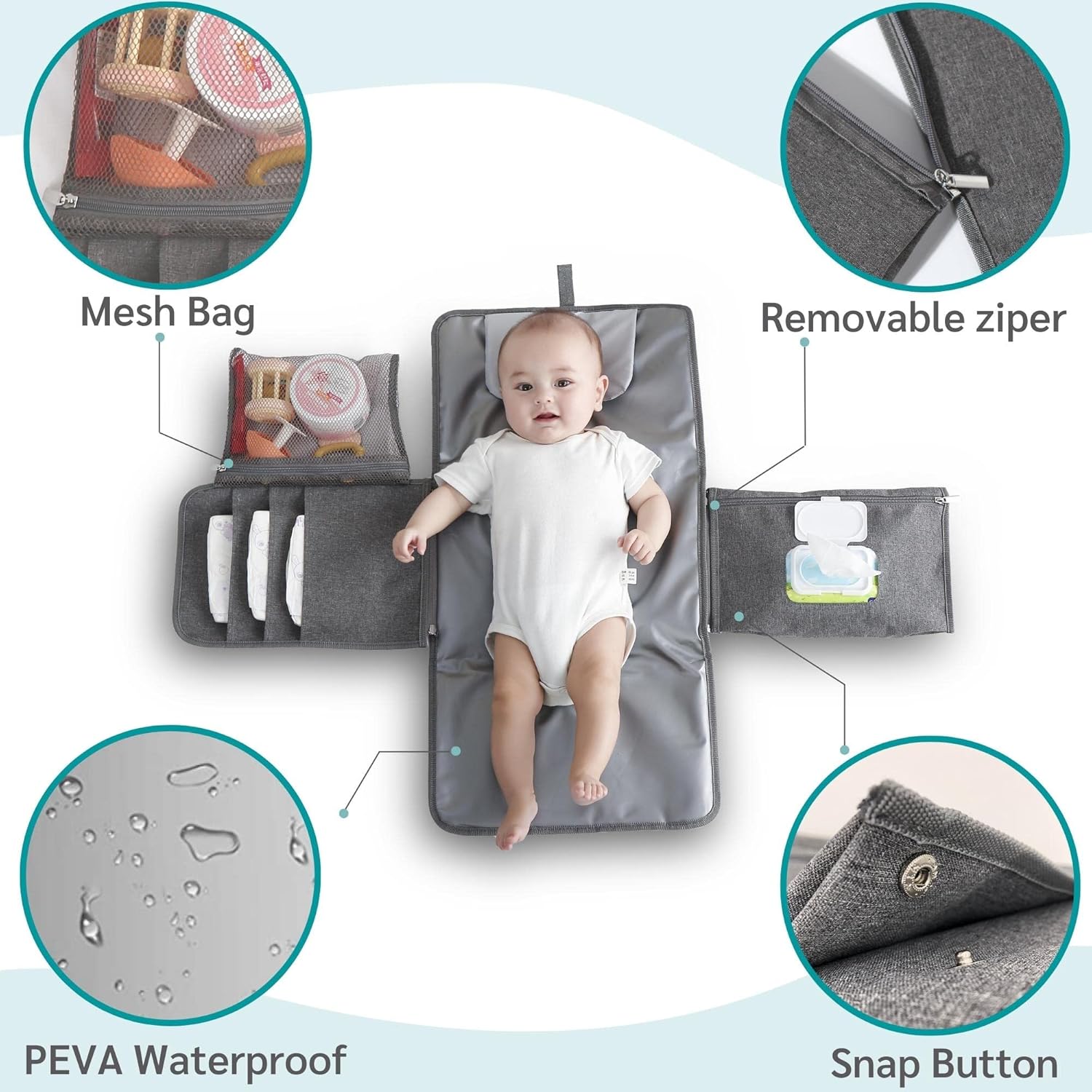 Baby Portable Changing Pad with Wipes Pocket for Diaper Bag Wipeable W – BUYO