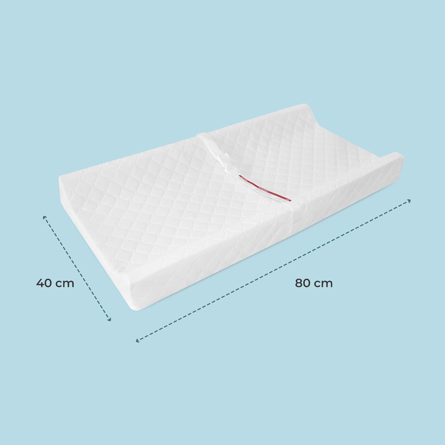 MOON 4-Sided Water Proof Diaper Changing Mat, 80Cm With Easy to Clean Cover Safety Strap, Fits All Standard Changing Tables/Dresser Tops, Safe and Comfortable Changing Pad -White