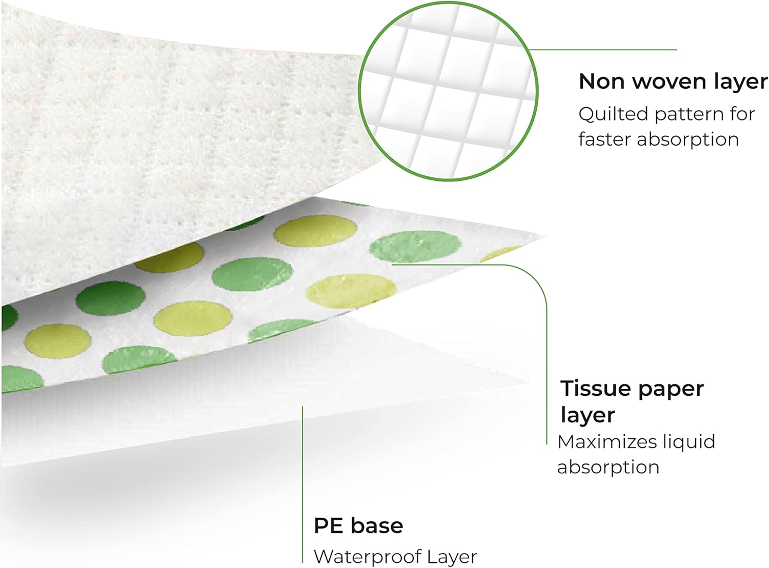 ✨Hygiene and Ultra Absorption: Designed with hygiene in mind, these changing mats offer excellent absorption capabilities to keep your baby dry and comfortable. The Three layer leakage-proof pad ensures maximum protection against leaks and spills.