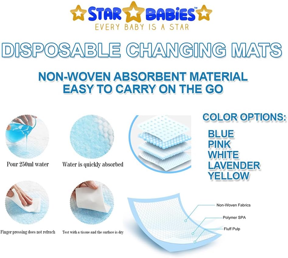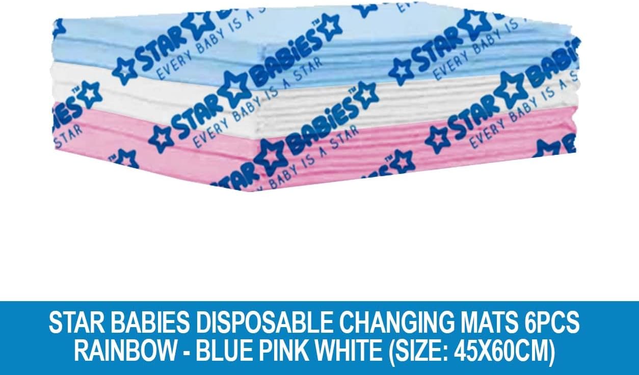 Star Babies Disposable Changing Mats - 45 x 60cm - Large Pack of of 6 - Blue/Pink/White-Rainbow
