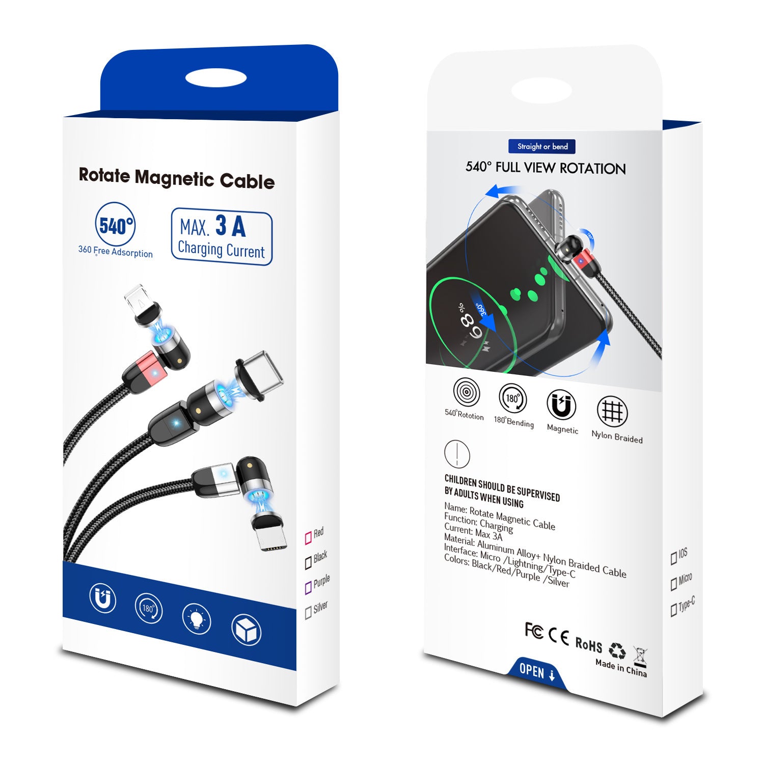 Compatible with Apple , New 3A Fast Charging Rotating Data Cable 540 Degree Circular Blind Magnetic Wire