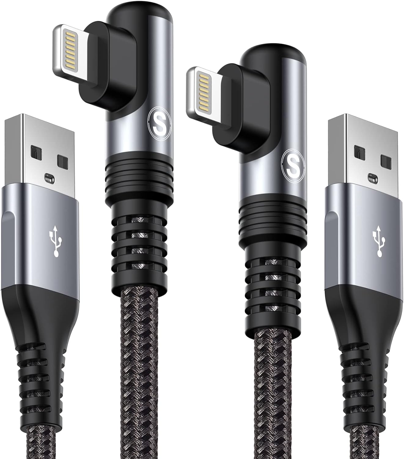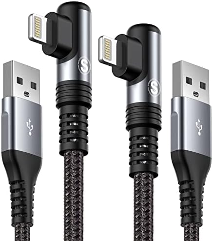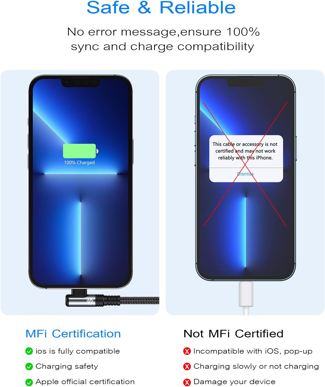 Lightning Cable Right Angle 2-Pack 2M, MFi Certified iPhone Charger Cable 90 Degree, Fast Charging Braided Cord, 18W PD Charge for iPhone Compatible with iPhone 14 Pro Max/14/13/12/11/XR/8 Plus/iPad